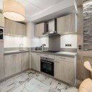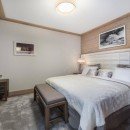 Within each room, the harmonious interplay of wood and stone commands attention. The decor exudes an air of refined sophistication, with contemporary furnishings including Scandinavian armchairs, cowhide poufs, and elegant pendant lights. Bathed in natural light, the apartment is enhanced by captivating polar bear paintings, evoking the majestic presence of the surrounding mountains. The balcony offers a captivating vantage point to relish the splendid vistas, a spectacle shared with the inviting living room.