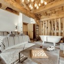 The main level features three large ensuite bedrooms, a cozy sauna, and a private outdoor hot tub perfect for unwinding after a day on the slopes. The open-plan living and dining area seamlessly flows into a reading nook and lounge, creating a bright and welcoming social space. Upstairs, the impressive master suite showcases double-height ceilings and an open-plan roll-top bath, complemented by an additional bedroom and bathroom. Every detail reflects exceptional craftsmanship and high-end finishes, making this apartment a true interior design gem.