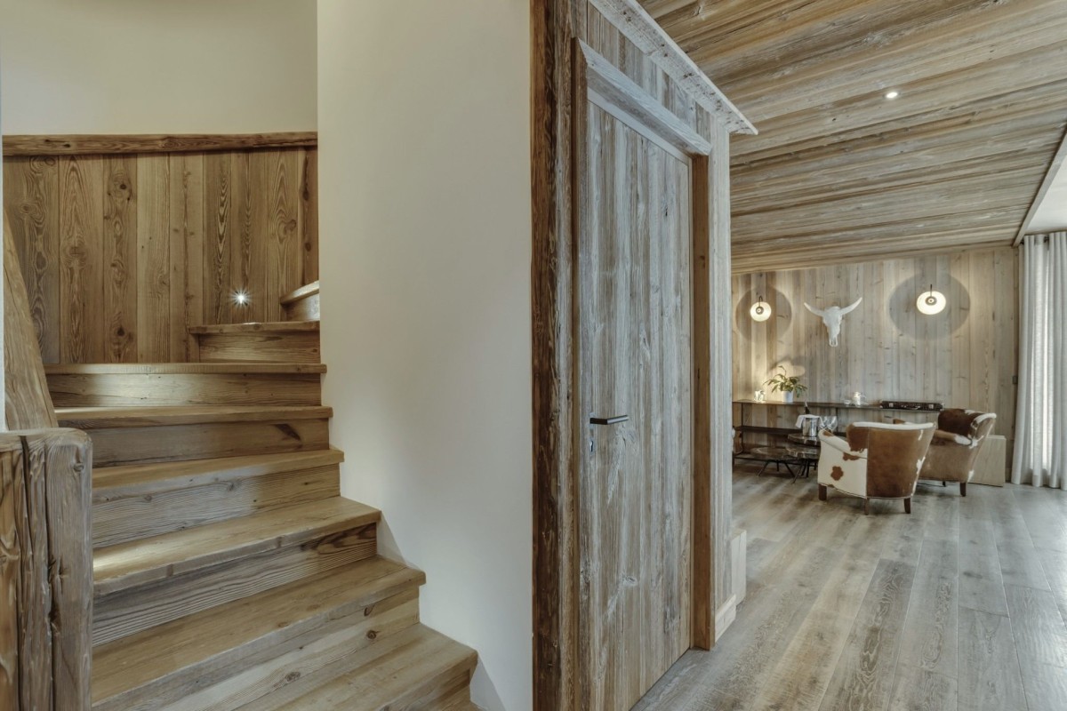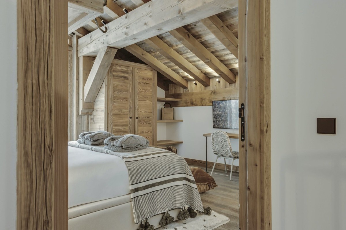 Designed by acclaimed architect John-Charles Covarel in 2019, the Cala residence in Le Légettaz neighborhood brings modern alpine sophistication to Val d’Isère. Spanning over 200m², Cala Slopeside exudes calm and warmth through natural wood finishes, white ceilings, and expansive windows that frame stunning south-facing vistas. Grey granite bathrooms with sleek black fixtures add an elegant contrast, while the layout ensures space and privacy across two floors.