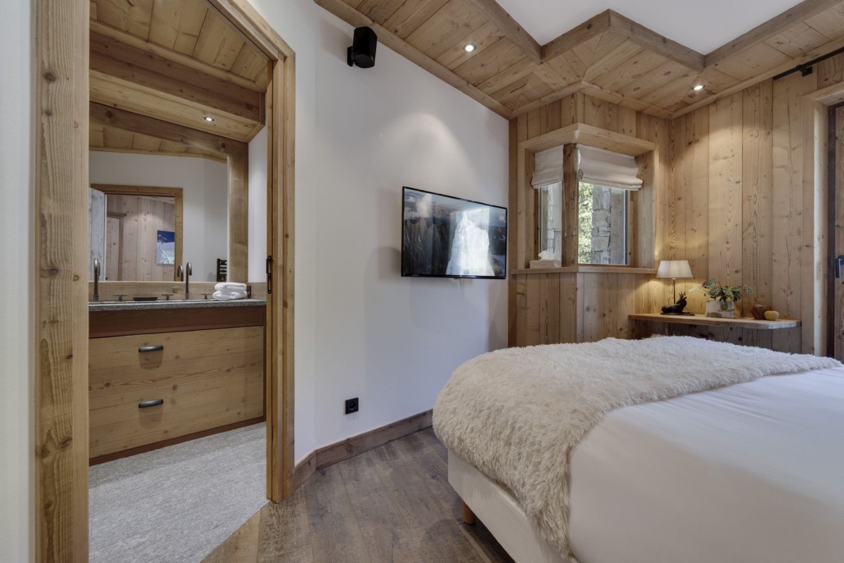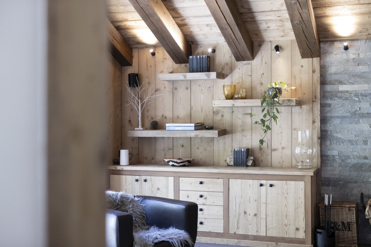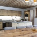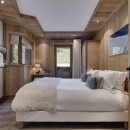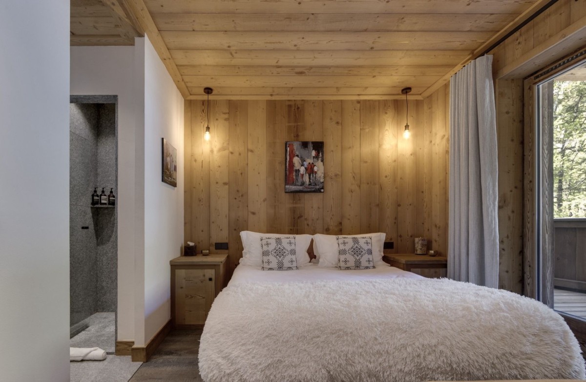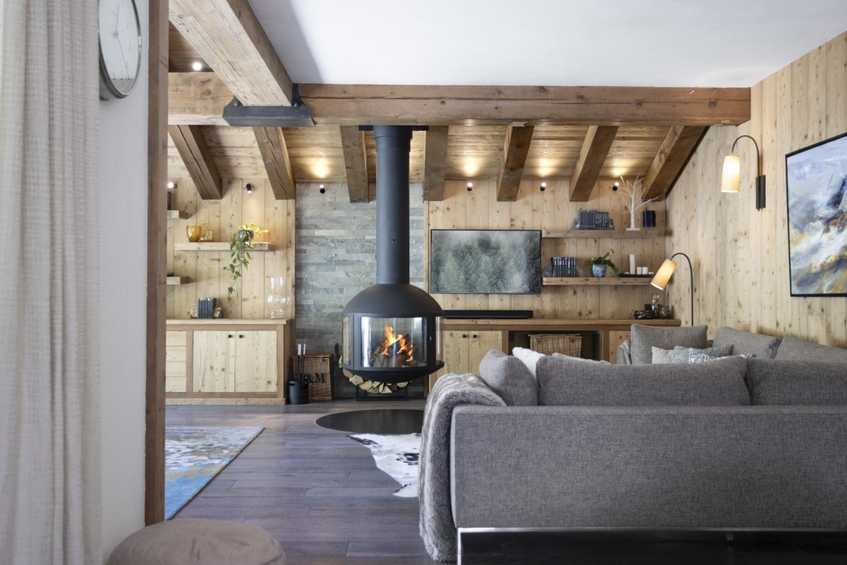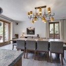 Designed by renowned architect John-Charles Covarel in 2019, Cala Stonepine forms part of the stylish Cala residence in the La Légettaz neighborhood. Spanning 174 square metres, the open-plan living and dining area combines rich wood tones, soft fabrics, and curated artwork for an inviting, modern alpine atmosphere. A striking circular fireplace anchors the lounge, while floor-to-ceiling windows open onto a panoramic terrace framing the legendary La Face slope. The sleek, fully equipped kitchen offers ample storage and a dining table for ten — perfect for relaxed family dinners or entertaining friends.