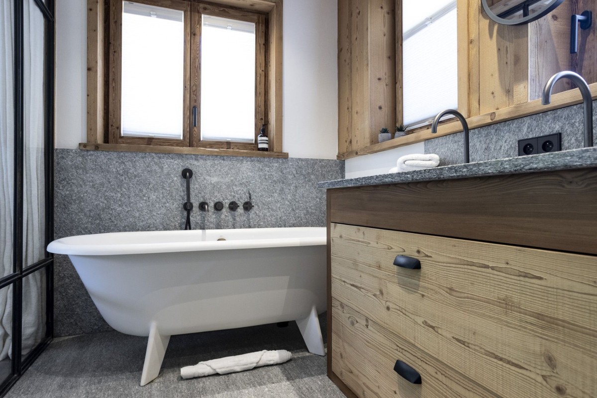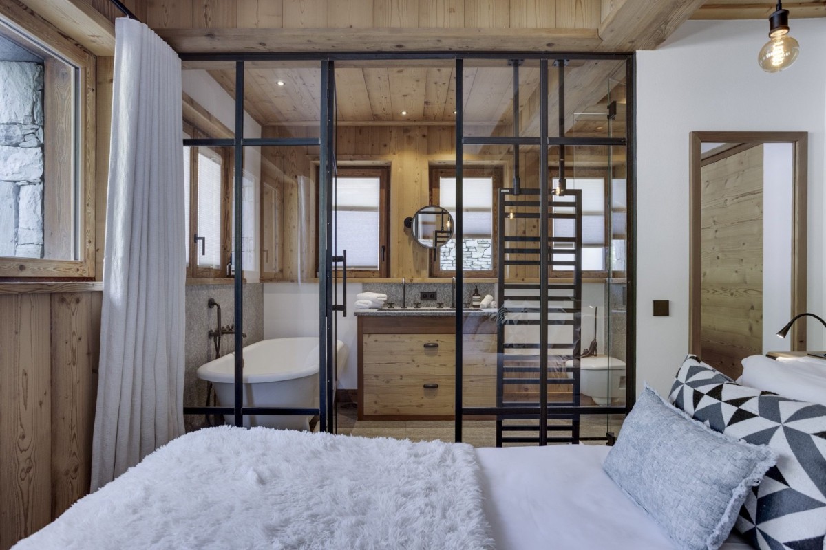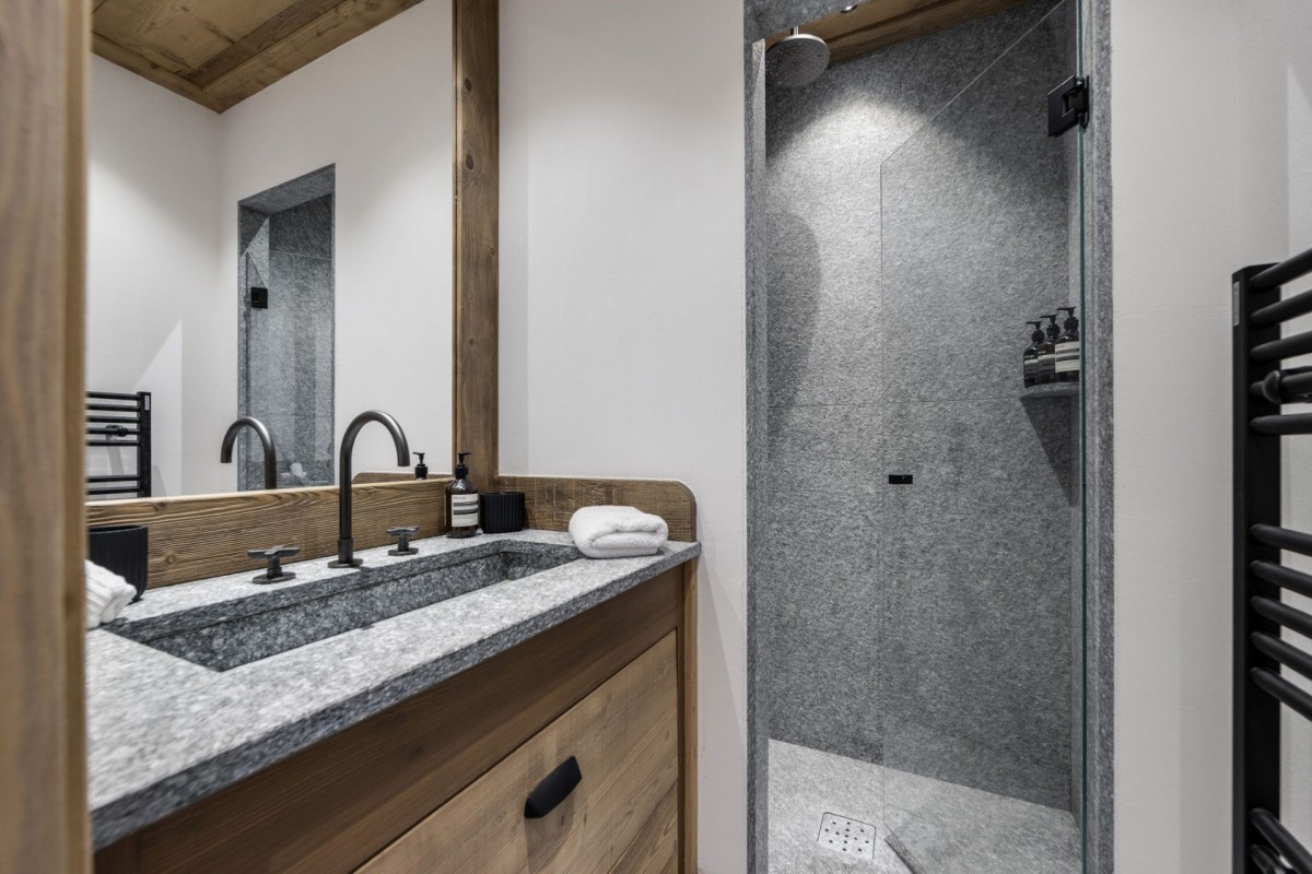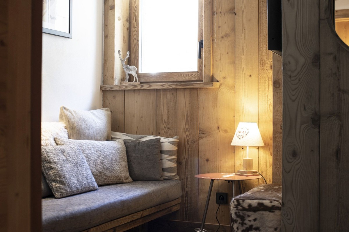 Designed by renowned architect John-Charles Covarel in 2019, Cala Stonepine forms part of the stylish Cala residence in the La Légettaz neighborhood. Spanning 174 square metres, the open-plan living and dining area combines rich wood tones, soft fabrics, and curated artwork for an inviting, modern alpine atmosphere. A striking circular fireplace anchors the lounge, while floor-to-ceiling windows open onto a panoramic terrace framing the legendary La Face slope. The sleek, fully equipped kitchen offers ample storage and a dining table for ten — perfect for relaxed family dinners or entertaining friends.