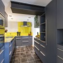 The second floor is home to the open-plan living and dining area, where plush velvet seating wraps around a central fireplace, creating a cosy, stylish space. The dining table seats up to 12 and overlooks the spacious garden—great for outdoor dining or a spot for children to play. There’s also a fully equipped modern kitchen, a guest WC, and a third bedroom with its own en-suite shower room.