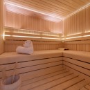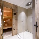 The ground floor is dedicated to relaxation, featuring a sauna, walk-in shower, and a private outdoor hot tub—ideal for unwinding after a day on the slopes. Two spacious bedrooms are located on this level: one with an en-suite bathroom, and the other with a separate bathroom just down the hall.