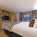 All four bedrooms are bright and tastefully furnished with alpine touches, and each features a flat-screen TV. Two of the rooms also offer direct terrace access for enjoying the fresh mountain air.
