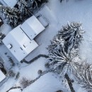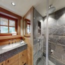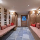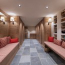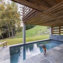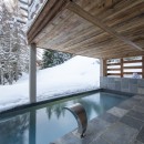 Outside on this level is the fantastic heated outdoor swimming pool. Under partial cover yet open to the elements on all sides, it is magical to take a dip here as the snow falls around you and the steam rises into the chilly air. With trees all around, this is a private and peaceful space to unwind after active ski days. There is also a ski room on this floor with abundant storage space.