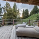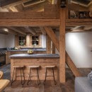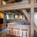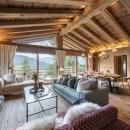 A breakfast bar with stools divides the space from the sleek modern kitchen, equipped with the latest appliances. Above this is a beautiful mezzanine level, a cozy space ideal for curling up with your favorite holiday book. On the opposite side of the room, large sliding glass doors open onto the sun-drenched terrace, a beautiful spot to pause and drink in the fresh Alpine air and uninterrupted views.