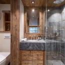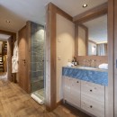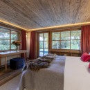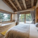 Also on this floor is the gorgeous master suite, complete with a beautiful bathtub surrounded by windows overlooking the mountains, a separate shower, a WC, and a shared balcony. Finished in cool neutral tones and wood, it is the perfect calming space to unwind in.