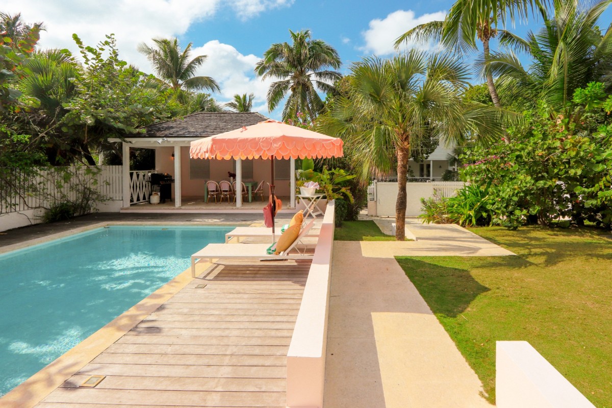 Unwind in the secluded pool area, surrounded by lush tropical flora. Let the tranquility of the island wash over you as you relax with a refreshing drink in hand, soaking in the peaceful beauty of Harbour Island.