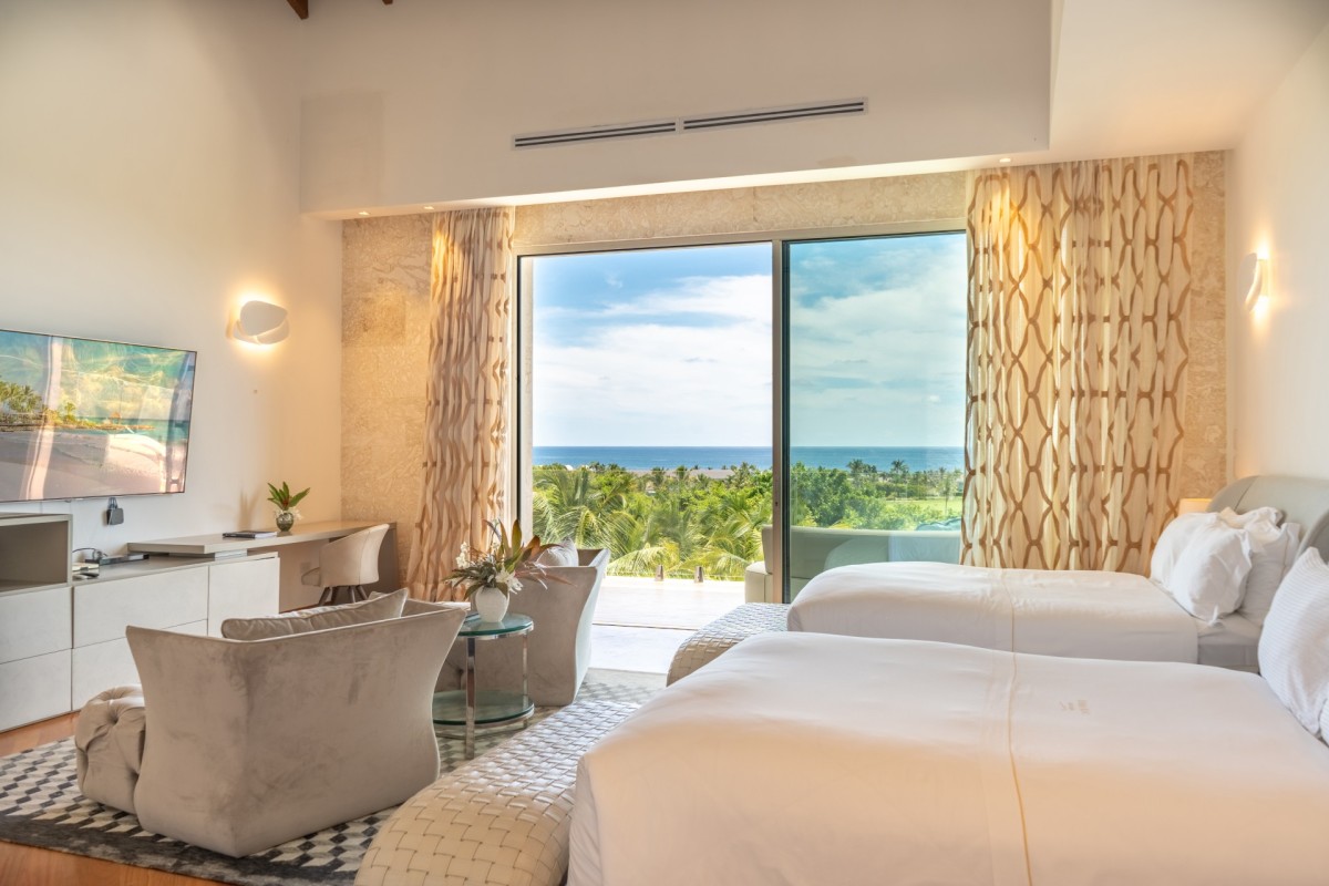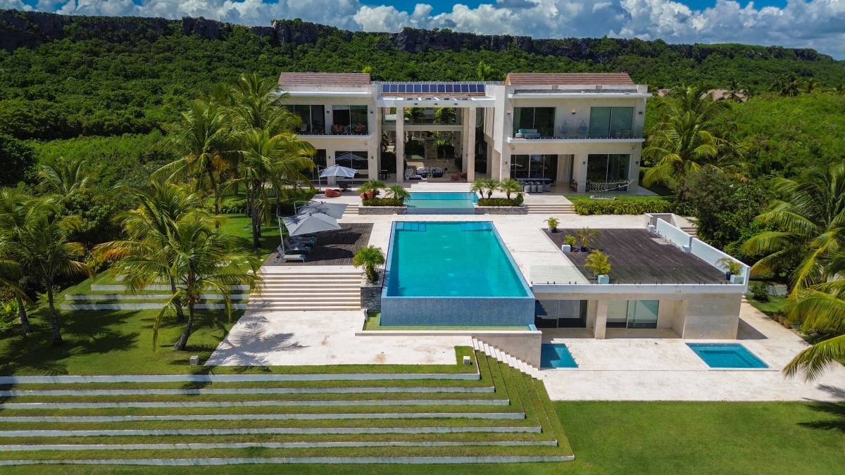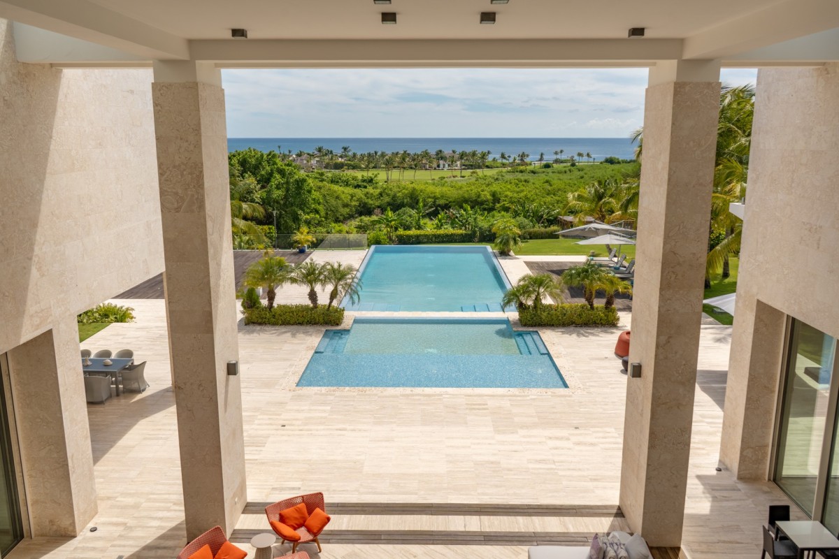 Welcome to Villa Parténope, where luxury, comfort, and Caribbean charm come together in the heart of Eden Roc Cap Cana. This stunning five-bedroom retreat captures the essence of refined island living, offering breathtaking views of the ocean and the Farallón cliffs. Designed for both relaxation and entertainment, the villa features multiple private pools — including one for children — a heated Jacuzzi, and expansive outdoor terraces perfect for soaking up the tropical ambiance.