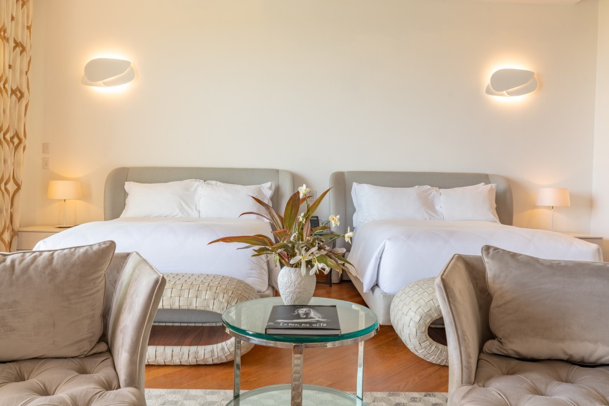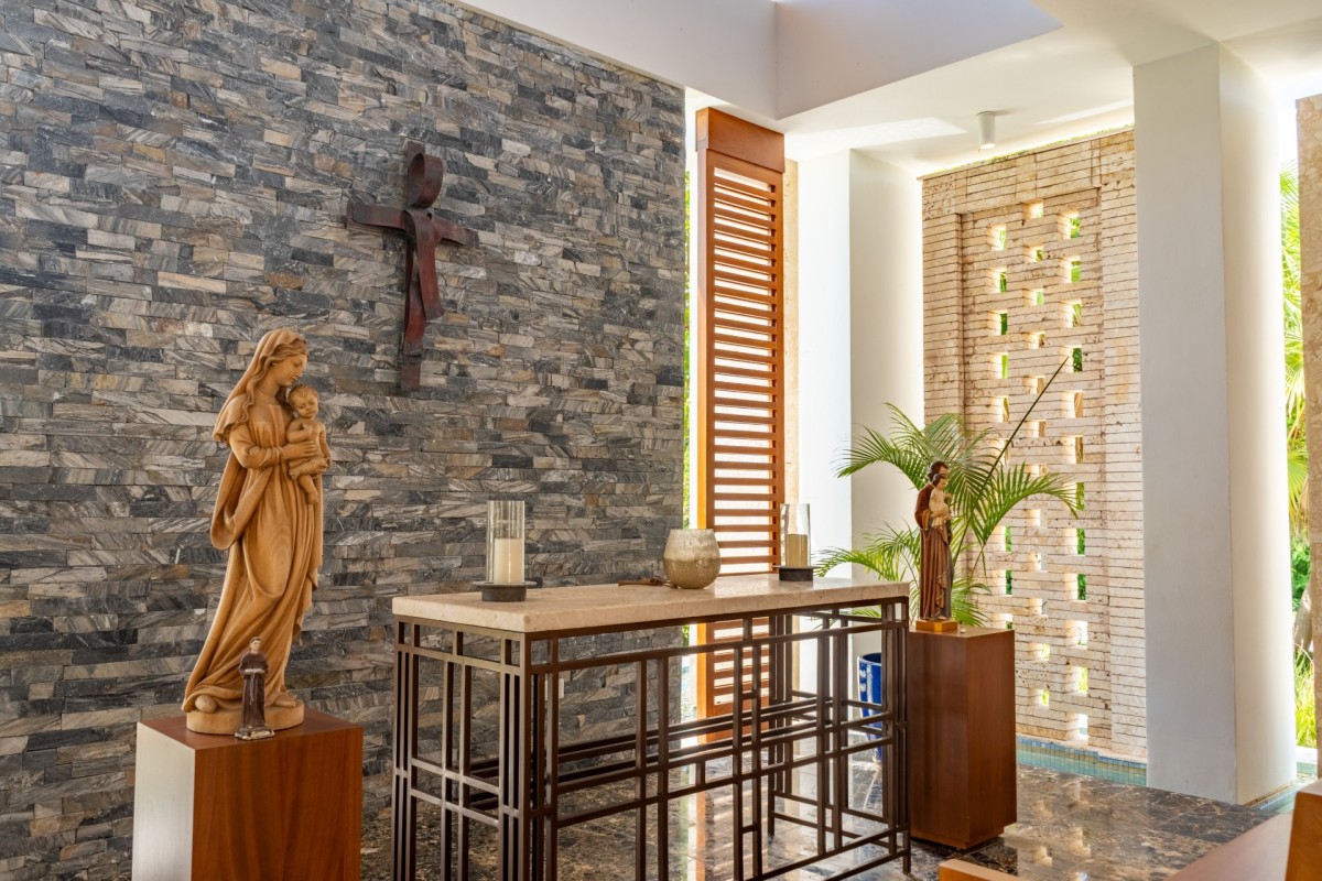 Every detail of Villa Parténope reflects a seamless balance between elegance and functionality. The two-level residence includes a private gym, elevator, organic garden, and even a private chapel, creating a truly unique and intimate experience. Each bedroom is thoughtfully appointed with modern comforts such as air conditioning, flat-screen TVs, and luxurious en-suite bathrooms complete with bathtubs and outdoor showers.