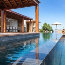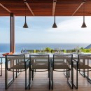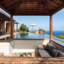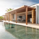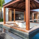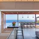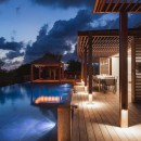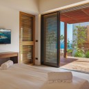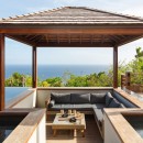 After all, a focal point of the five-bedroom luxury property is the expansive pool terrace. Stretching the length of the villa, it features a charming array of outdoor living spaces in addition to the irresistible, infinity-edge pool. There is a beautifully furnished sun deck, a gazebo that offers an innovative sunken seating area that positions guests eye-level with the water, and a verandah with al fresco dining and lounging. The materials used in constructing the villa only enhance the overall experience, with exotic wood forming the canopy over the verandah and blending seamlessly with the doors.