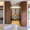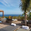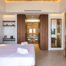 The five bedrooms are an ideal match to the rest of the stylish and appealing surroundings, and they are divided between the main house and the attached bungalows at either end of the villa. The main house contains the master suite, with a large dressing and lounge area, king bed, and opulent private bath. There are two additional king suites in the main house, and they too are ensuite. All open to the terrace. The bungalow bedrooms are also king suites with private baths and direct access to the pool terrace.