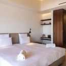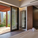The lines between indoor and outdoor spaces are merged easily thanks to the oversized doors that make entire walls disappear. This leaves the guests to enjoy the delightful views from the pool area or the comforts of the beautifully appointed interiors. There is a great room with living room and entertainment space, the dining area, and the breakfast bar that opens into the open-air kitchen. A gourmet dream, it includes all of the appliances and gear needed to make even the more complex of recipes or simplest of morning beverages. Inside there is also a fitness center to help keep in shape.