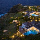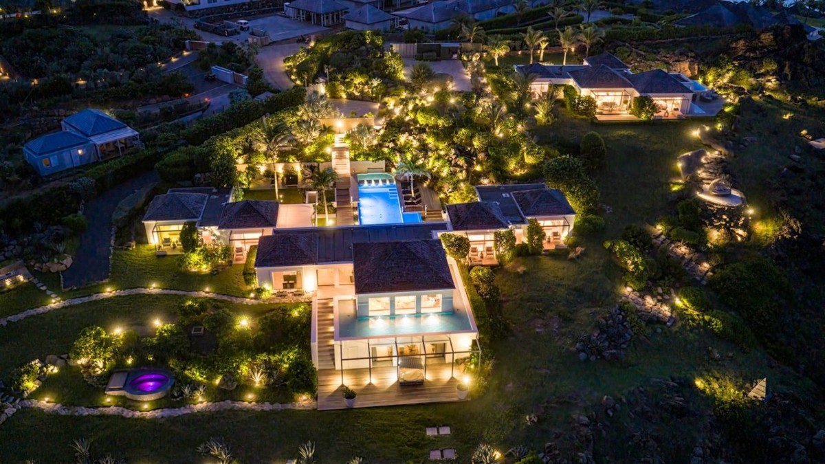 The large villa has four luxury bedrooms that include king beds, dressing rooms, premium entertainment systems, and large ensuite baths. All are ocean view rooms. The smaller villa has two king suites each with dressing rooms, private baths, entertainment systems and access to a separate kitchen, pool and living rooms.