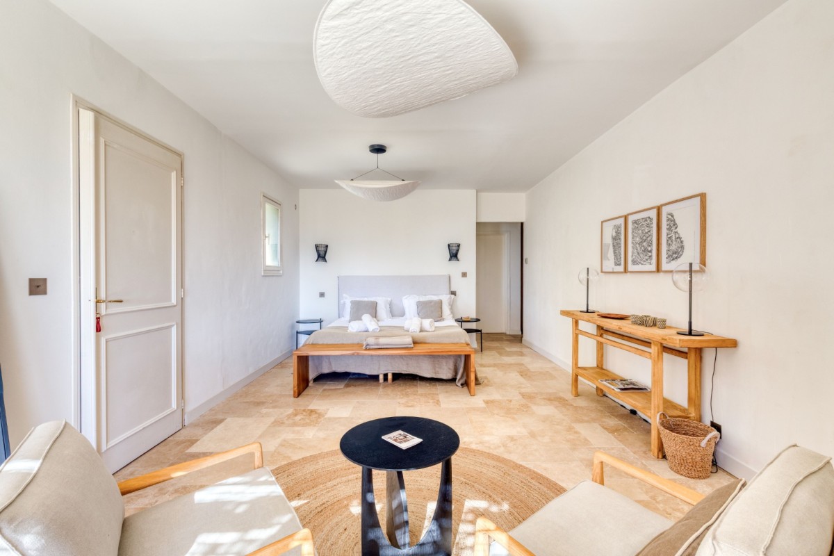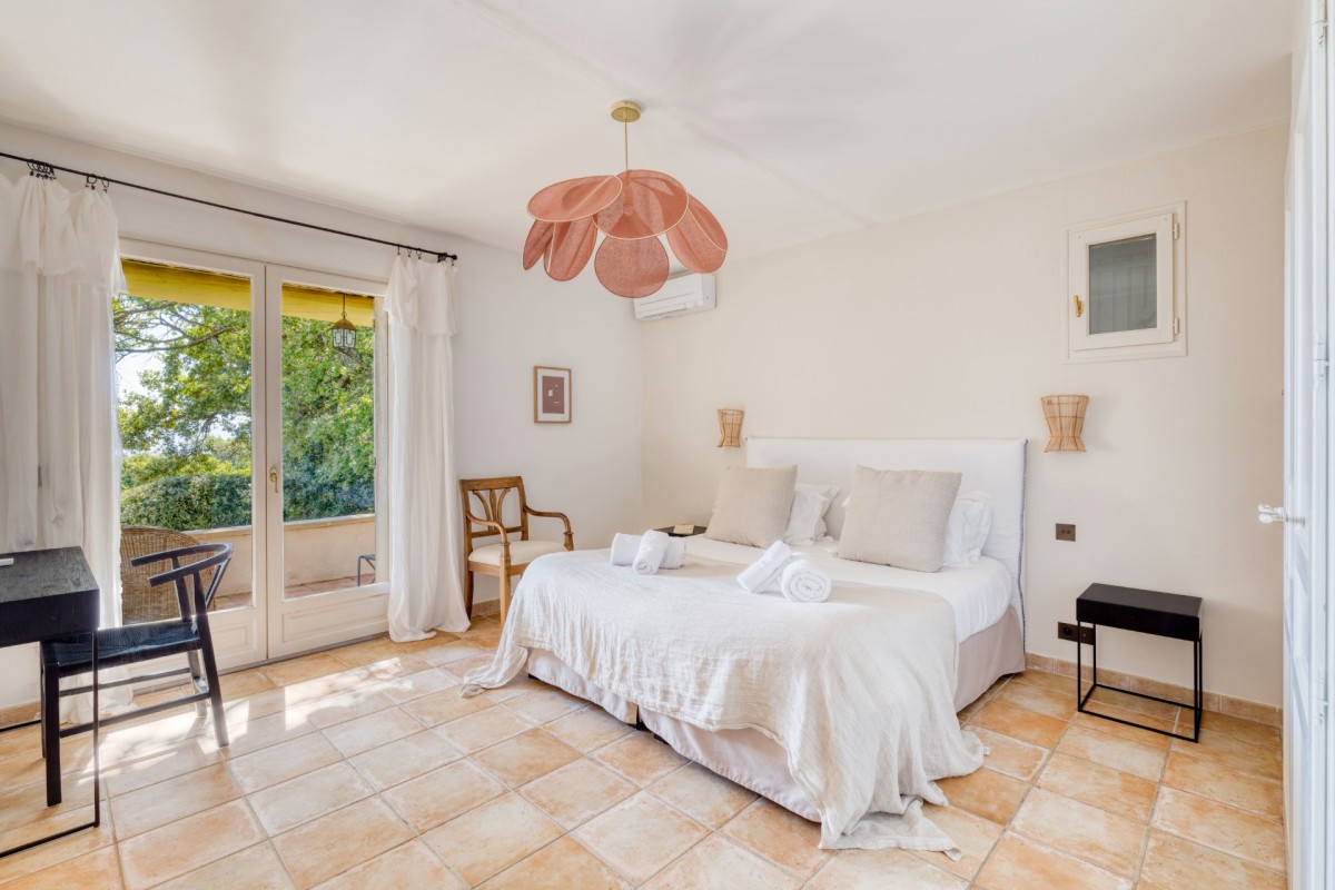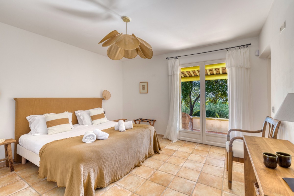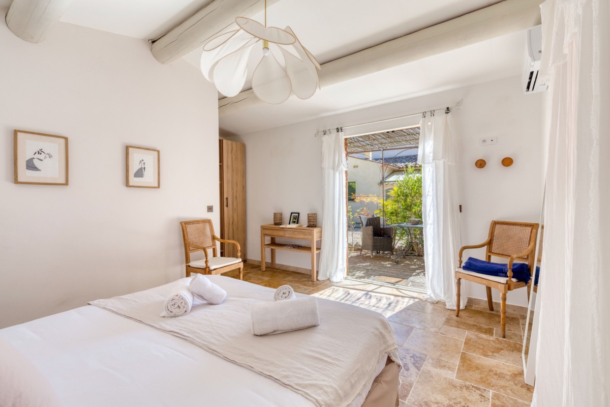 Amidst the sprawling 9,800 m² landscaped garden, guests can indulge in a variety of activities or simply unwind by the pool, soaking in the serene ambiance. Recently refurbished, the farmhouse seamlessly blends modern amenities with traditional Provencal charm, including centralized air conditioning for added comfort.