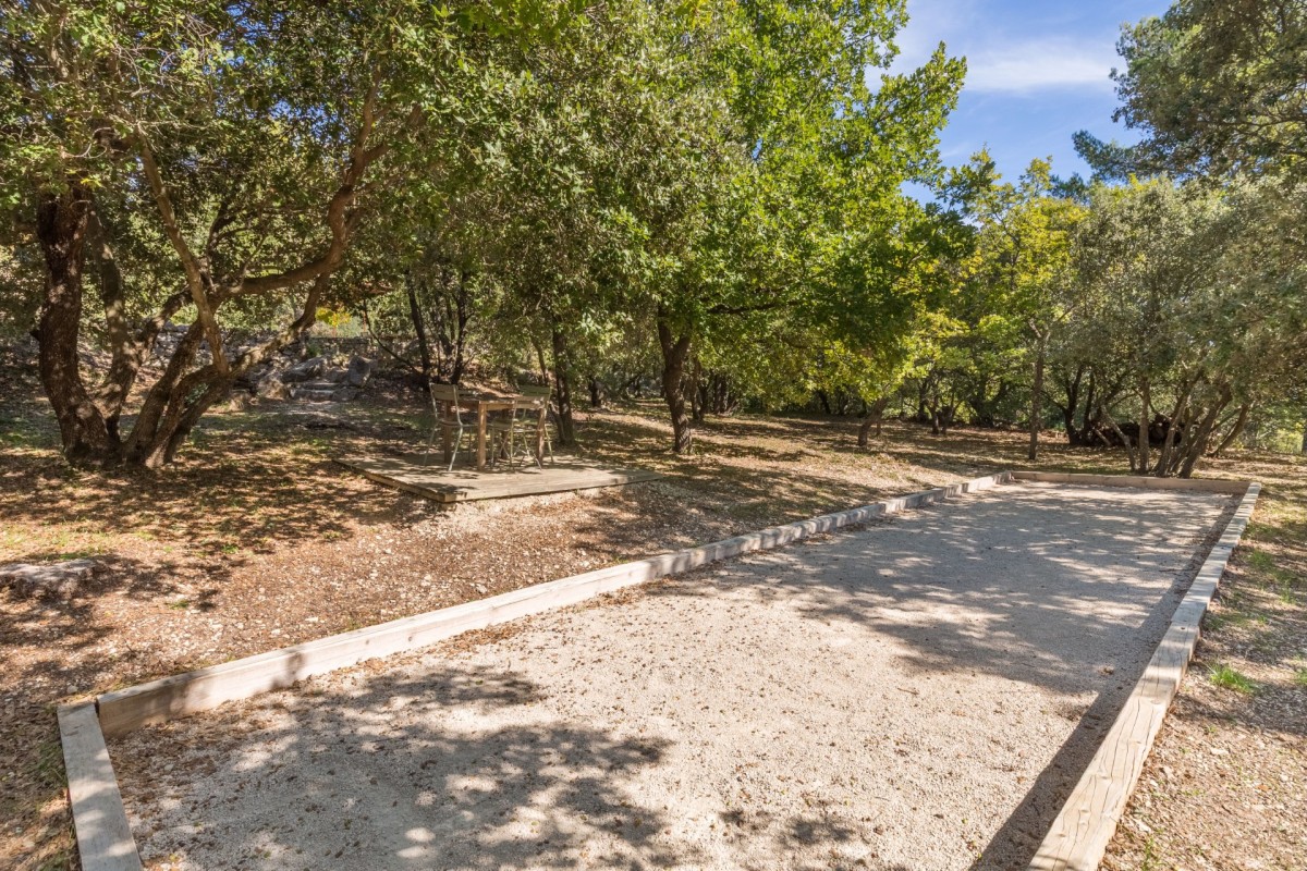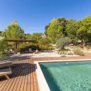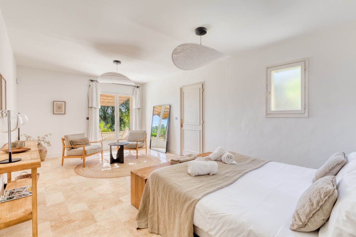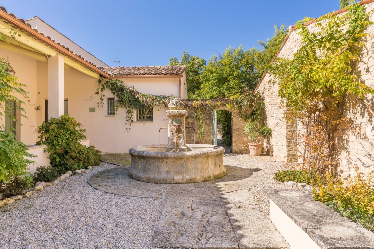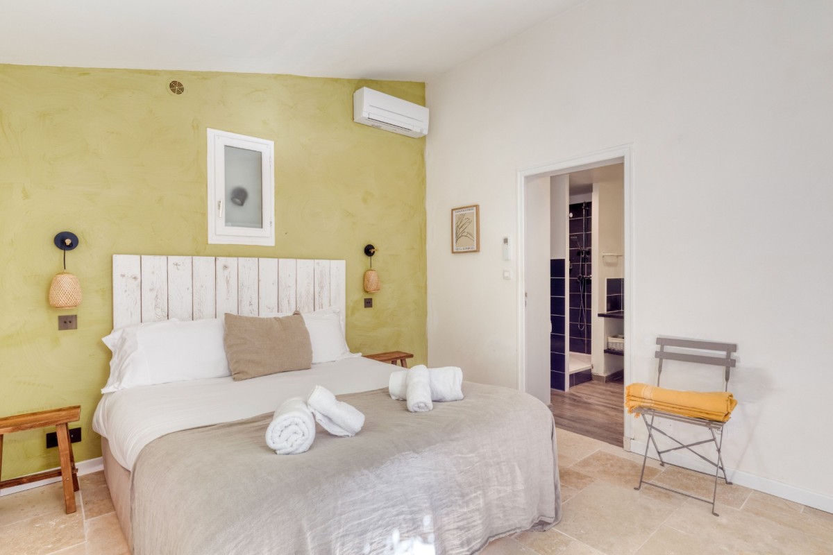 Amidst the sprawling 9,800 m² landscaped garden, guests can indulge in a variety of activities or simply unwind by the pool, soaking in the serene ambiance. Recently refurbished, the farmhouse seamlessly blends modern amenities with traditional Provencal charm, including centralized air conditioning for added comfort.