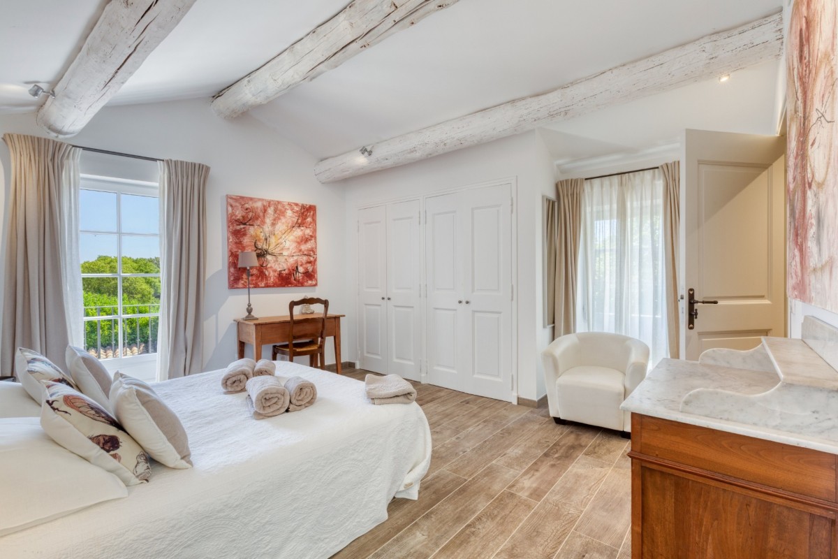 Bedroom 5: First floor bedroom with a queen-size bed, balcony, A/C and en-suite bathroom with shower, double vanity and WC. 2 guests maximum.