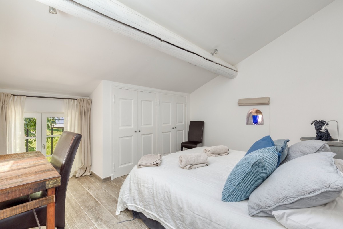 Bedroom 4: First floor bedroom with a queen-size bed (can be made up as 2 single beds), A/C and en-suite bathroom with shower, vanity and WC. 2 guests maximum.
