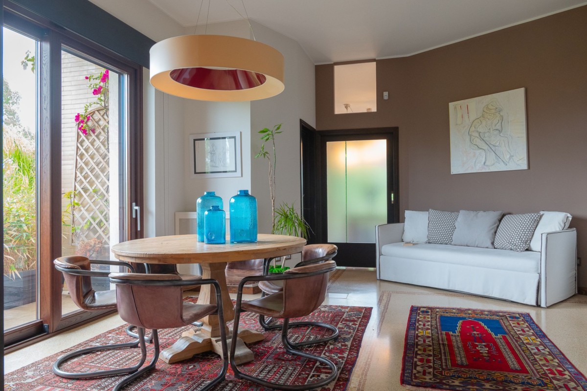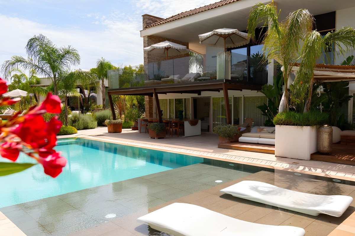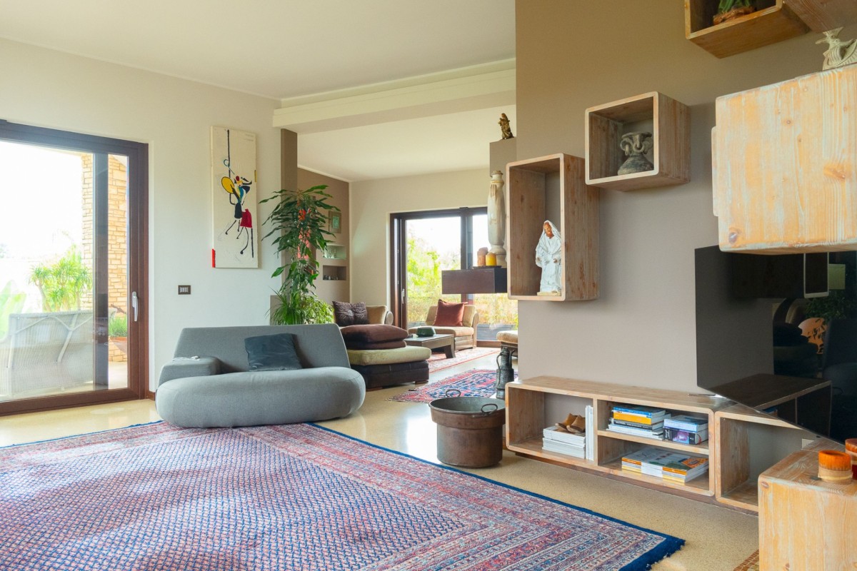 The villa’s interiors are bright, elegant, and tastefully furnished in a modern style that complements the natural surroundings.