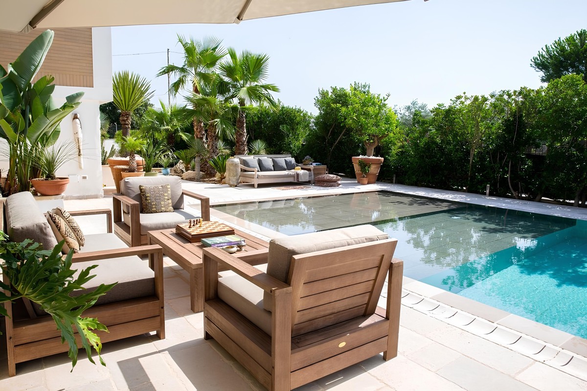 Luxury villa with two pools, a gym, and a private garden, located in the lower Salento area near Tricase. It can sleep up to 12 people, has 5 bedrooms and 6 bathrooms.