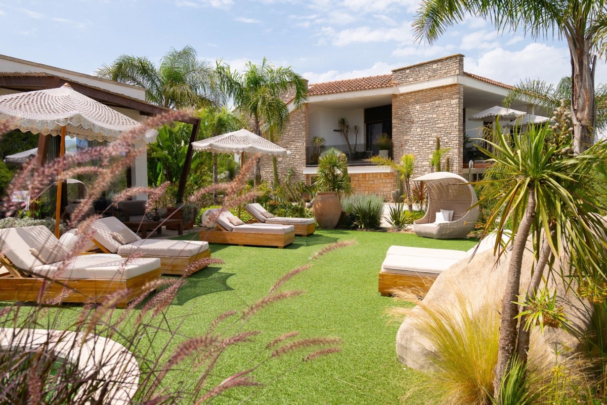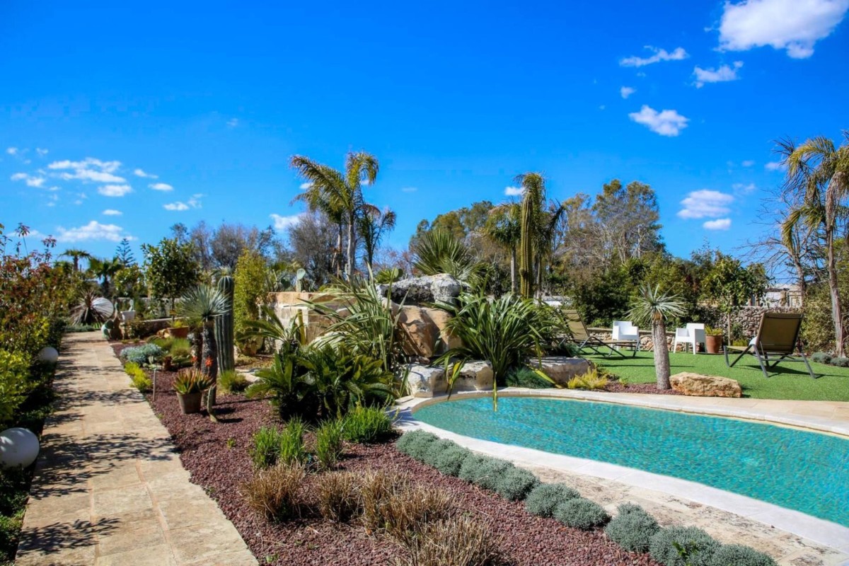 Villa Tricase is located in Depressa, a hamlet of Tricase, in the lower Salento area. Surrounded by a private fenced garden with lush vegetation, lounge areas, and panoramic balconies, the property features two beautiful pools open all year round: a smaller heated pool (5 x 3 m, depth 1.30 m) and a larger pool with a diving board (12 x 5 m, depth 1.50 m). Both pools are equipped with sun loungers, parasols, and an external shower.