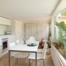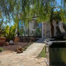The outdoor area also includes a large covered patio furnished with a sofa, dining table, and barbecue, ideal for alfresco meals. Guests also have access to private parking with 2 covered and 2 uncovered spaces.