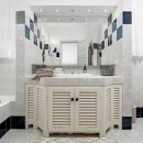 The villa comprises seven bedrooms, one of which accommodates four guests and another dedicated for a single occupant. There are six bathrooms, each equipped with showers, while one bedroom features both a bathtub and a shower. The villa also features a fully equipped kitchen for your culinary needs.