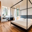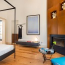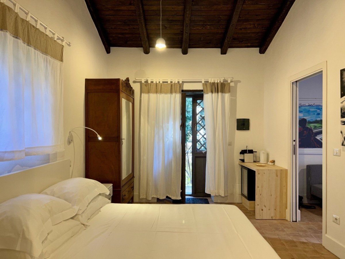 Bedroom 1: Bedroom with a king-size bed, A/C, WiFi, fireplace, balcony access, and en-suite bathroom with Turkish bath, shower, vanity, bidet and WC. 2 guests maximum