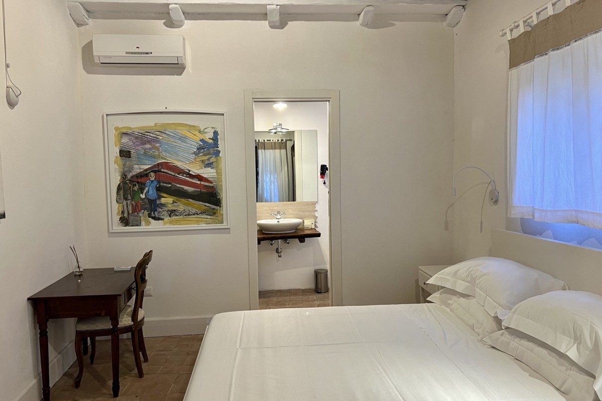 Bedroom 6: Bedroom with a king-size bed (can be made up as two single beds), A/C, WiFi, and en-suite bathroom with shower, vanity and WC. 2 guests maximum
