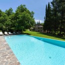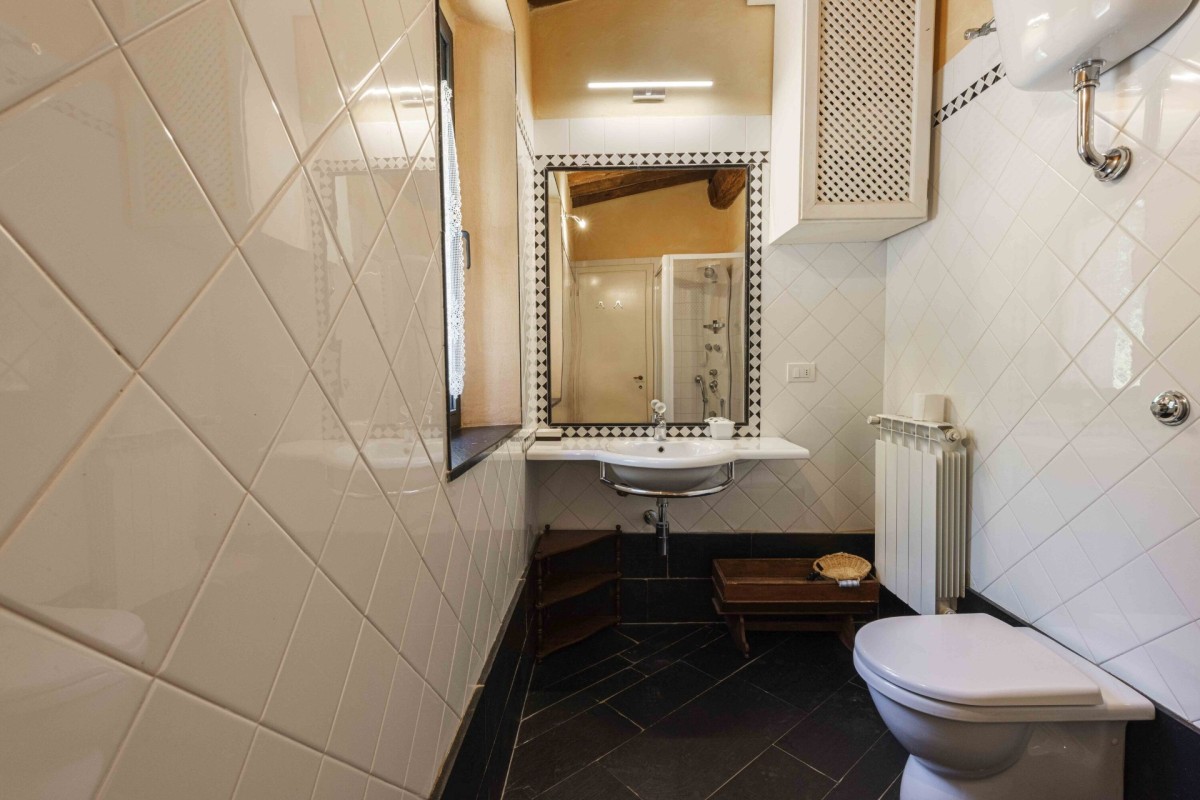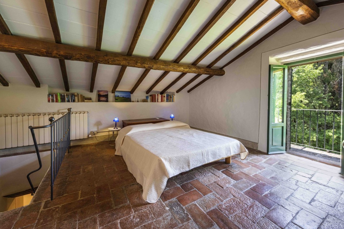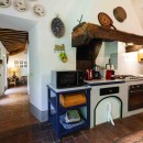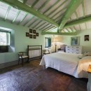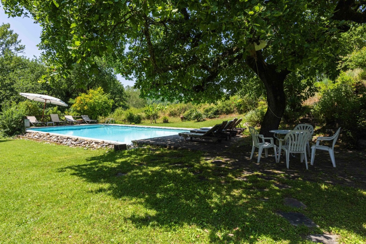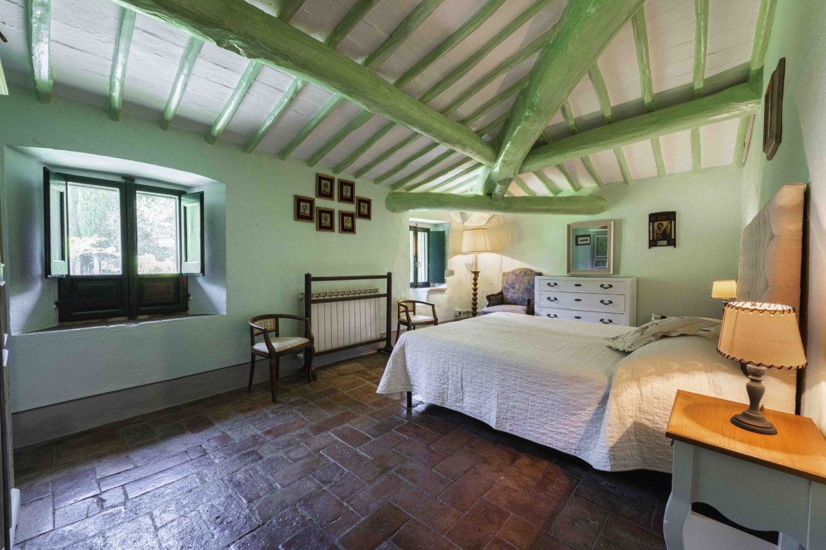 Once an ancient mill, the villa has been beautifully restored with exposed beams, terracotta floors, and stone walls, blending rustic charm with elegant furnishings. Inside, you’ll find spacious and bright living areas with sofas, a TV, piano, and dining room overlooking the pool. The kitchen is fully equipped and offers direct access to the garden. A laundry room is also available.