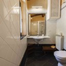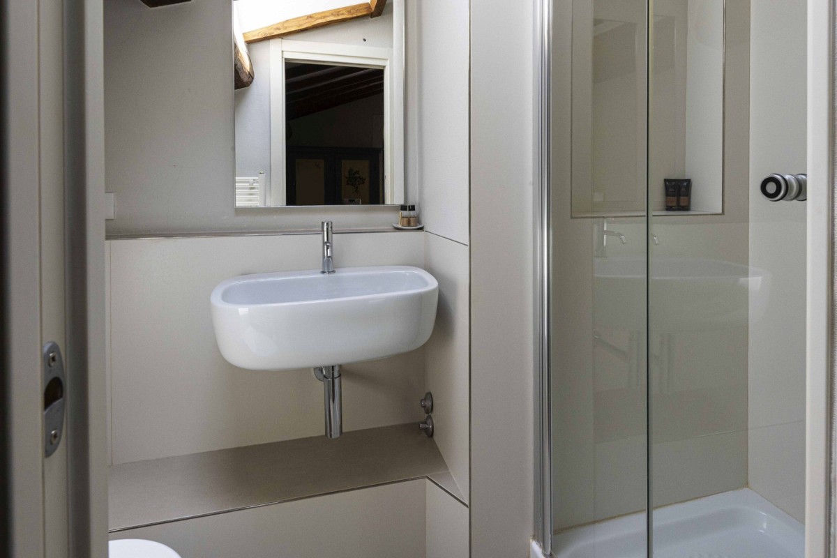 The independent dependance provides a cozy sitting area with a minibar and breakfast table, along with a bathroom featuring a hydromassage shower—perfect for guests seeking extra privacy.