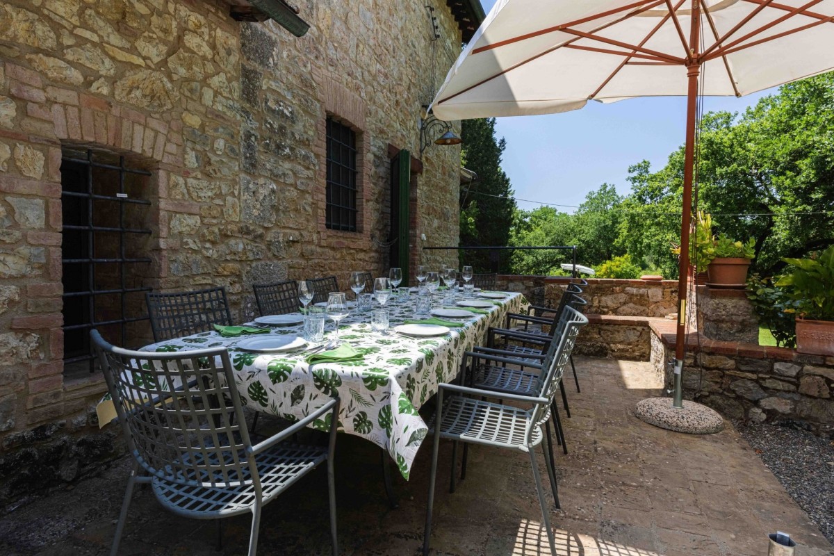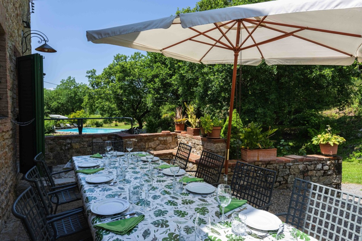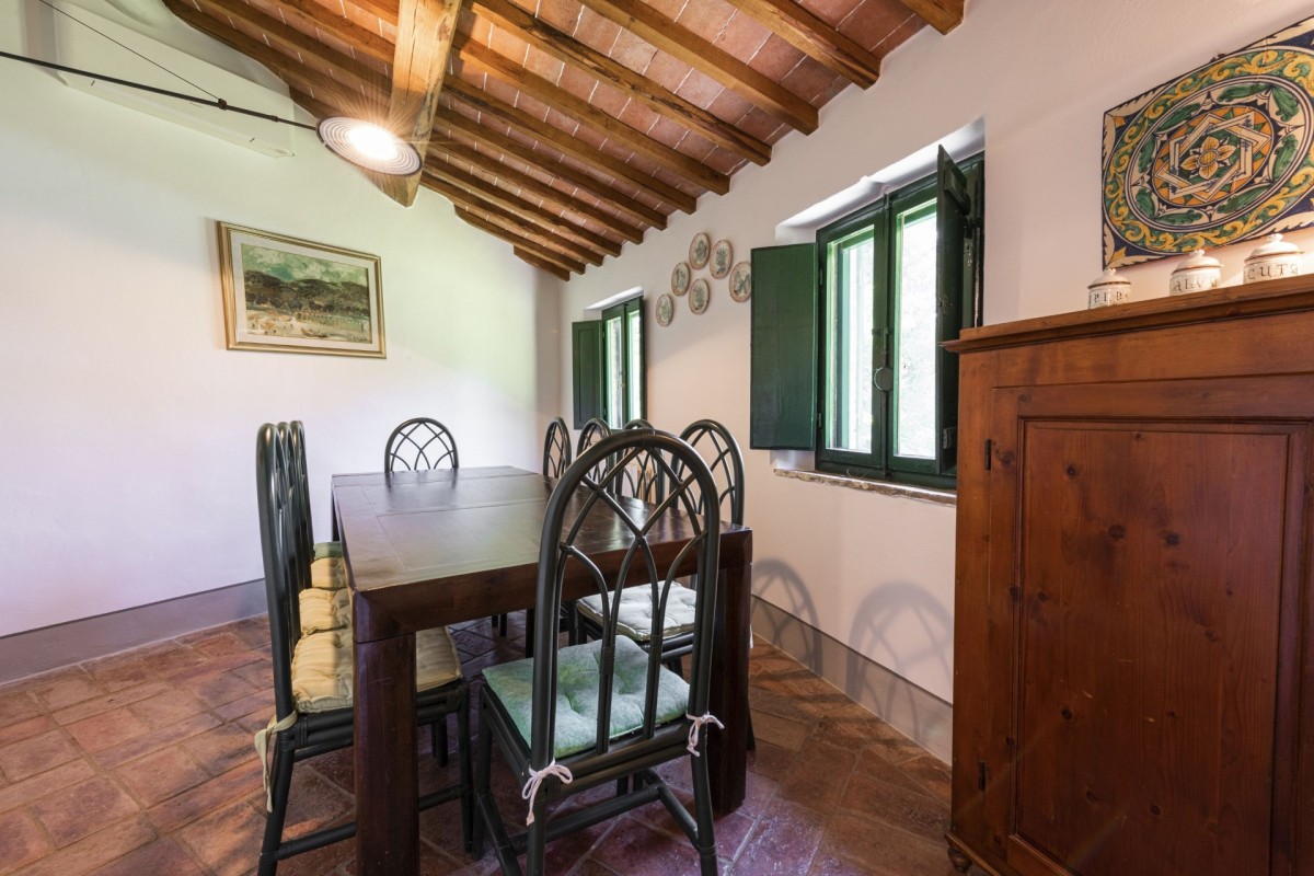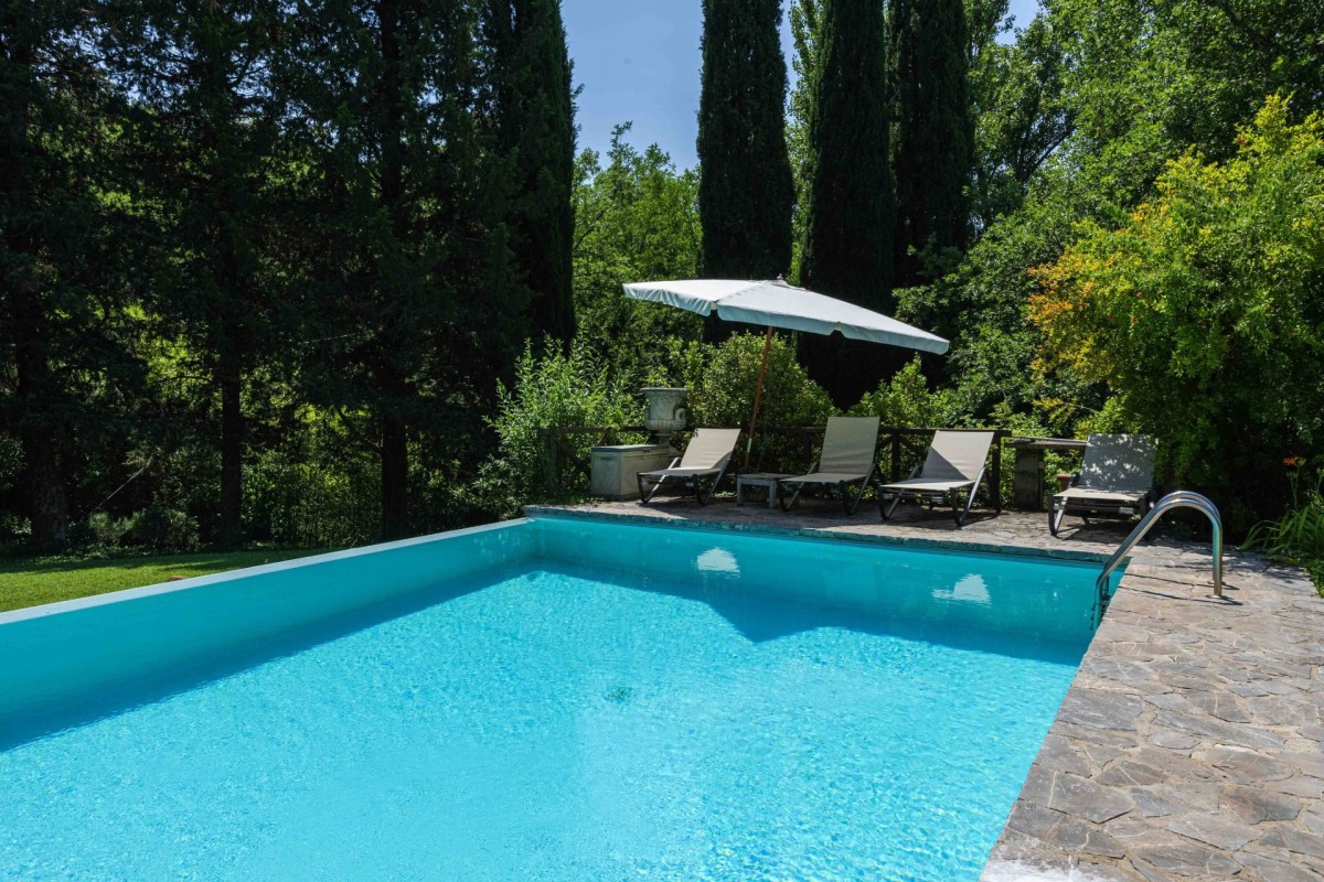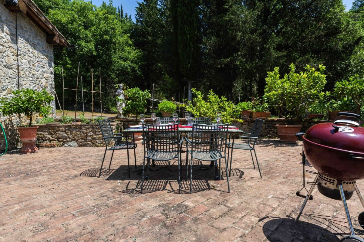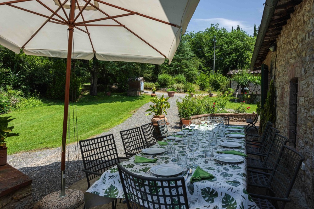 Traditional Tuscan farmhouse with private garden and pool, nestled in the Chianti Classico countryside near Gaiole. It can sleep up to 10 people, has 5 bedrooms and 4 bathrooms.