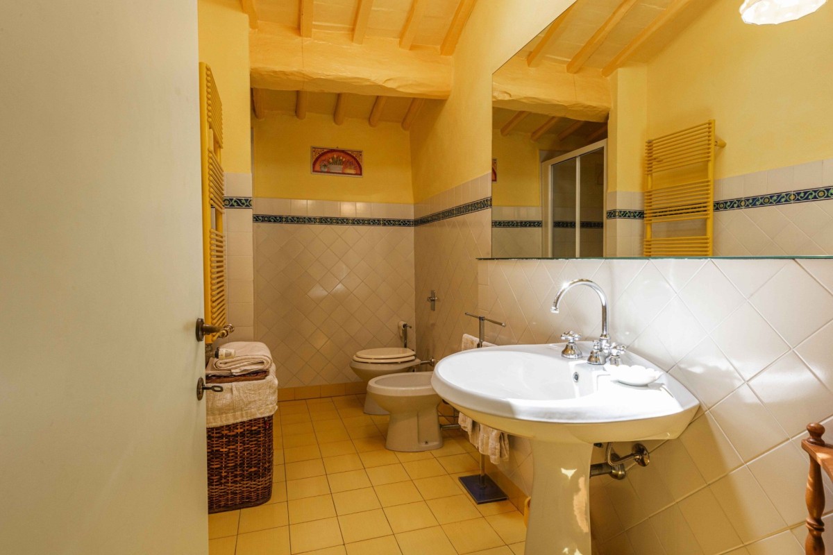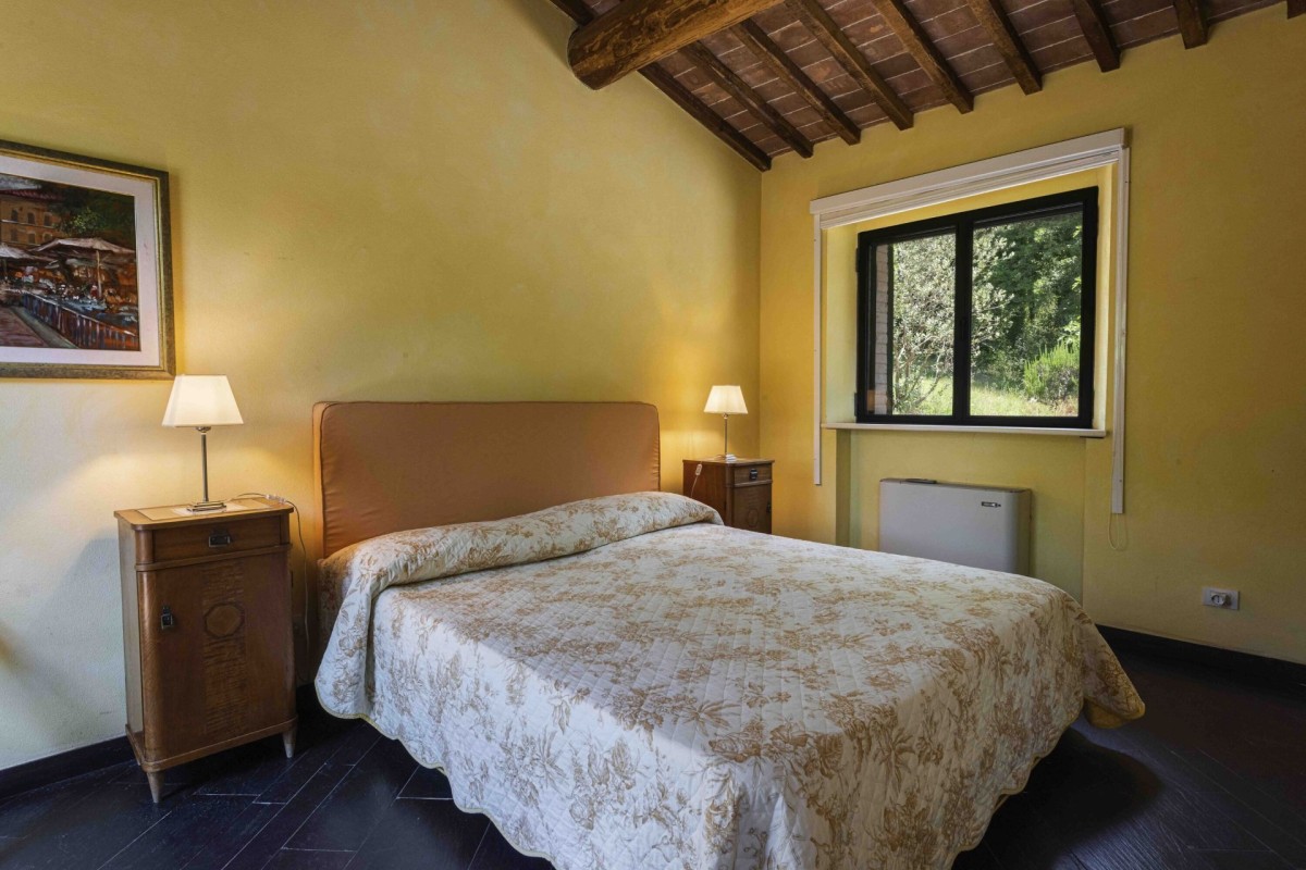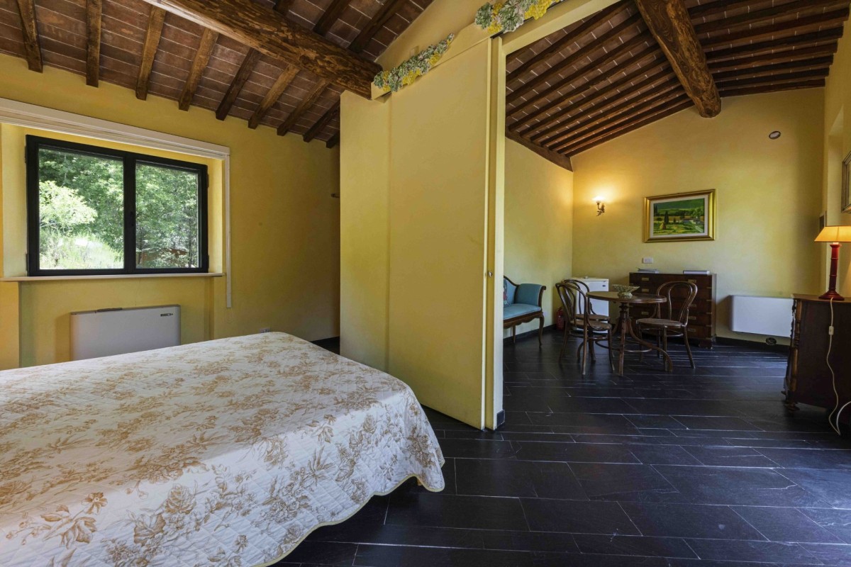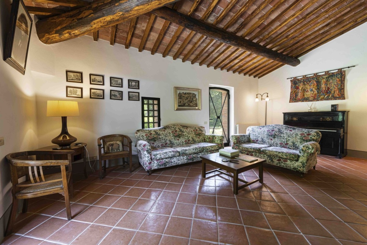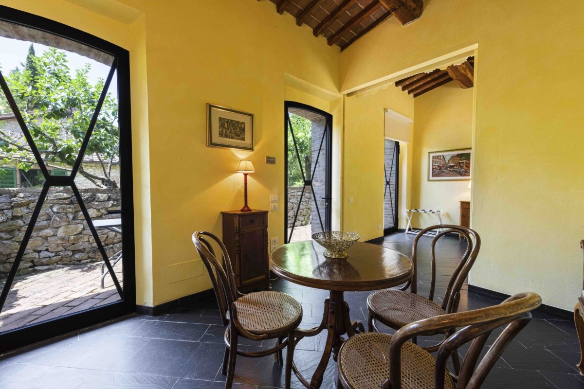 A stunning saltwater infinity pool (12 x 6 m, depth 1.50–2.50 m) with loungers, umbrellas, and solar shower enhances the outdoor space. The pool, open from late April to early October, is framed by a Chianti stone solarium and offers breathtaking views of the surrounding countryside. At the back, there is private parking for up to 4 cars.