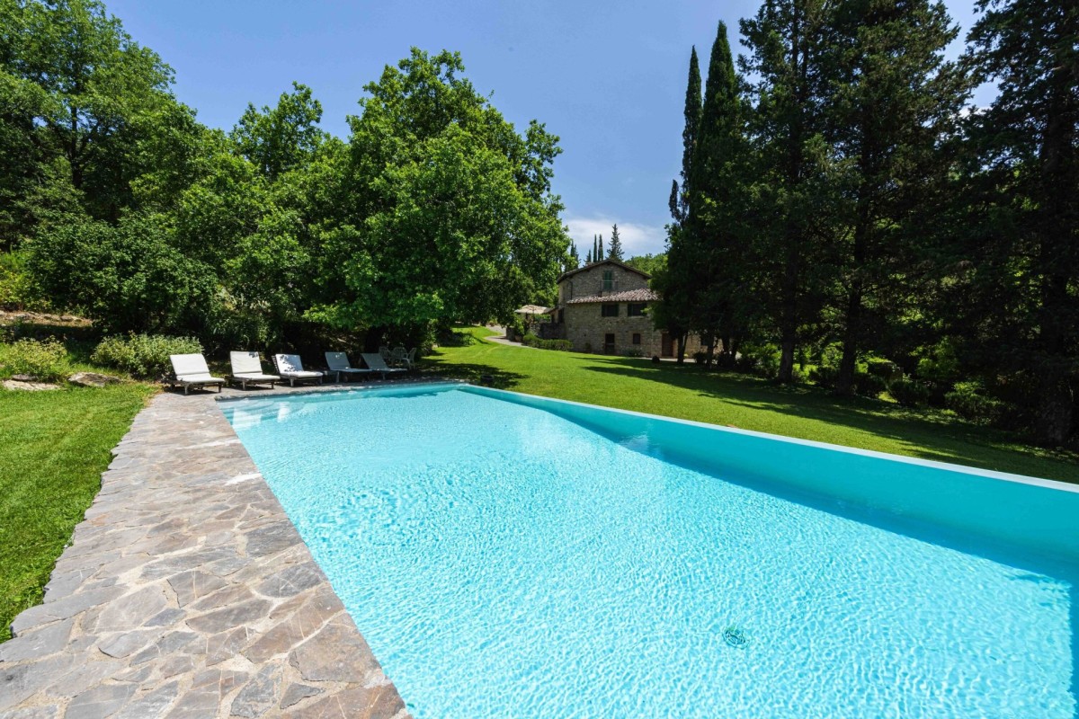 Villa la Pecine, an ancient mill on the Pecine stream from which it takes its name, stands in a sunny valley in the heart of the Chianti Classico countryside. It is surrounded by the lush woods of Lucignano and Monti, just a short walk from the enchanting village of Gaiole.