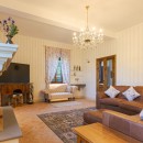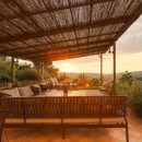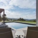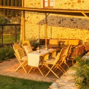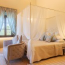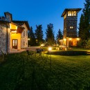 The expansive gardens are beautifully maintained, with lawns, olive trees, and blooming flowers arranged into tranquil corners. Guests can dine beneath shaded verandas, unwind in outdoor lounges, or swim in a panoramic pool that opens to sweeping hillside views. As night falls, gentle garden lighting transforms the property into a truly magical atmosphere.