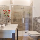 Bedroom 4: Camera Azzurra Bedroom with a queen-size bed, A/C, WiFi, garden and watchtower view, and en-suite bathroom with shower, vanity, and WC. 2 guests maximum.