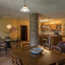 Guests have access to a generous shared living area with its own entrance, including a fully equipped kitchen with modern appliances, a dining room for up to 20 people, and a lounge area with a fireplace, TV, and stereo system connected to both indoor and outdoor spaces. A tasting area and a bathroom with a shower complete this convivial section of the house, which opens directly onto a covered porch with another large dining table.
