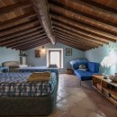Originally dating back to the 18th century, Villa Mazzini has been carefully restored while preserving traditional Tuscan materials such as wooden beams, red brick, and travertine stone. The villa comprises three independent apartments and one separate suite (each with its own entrance), combining privacy with communal spaces ideal for large groups.