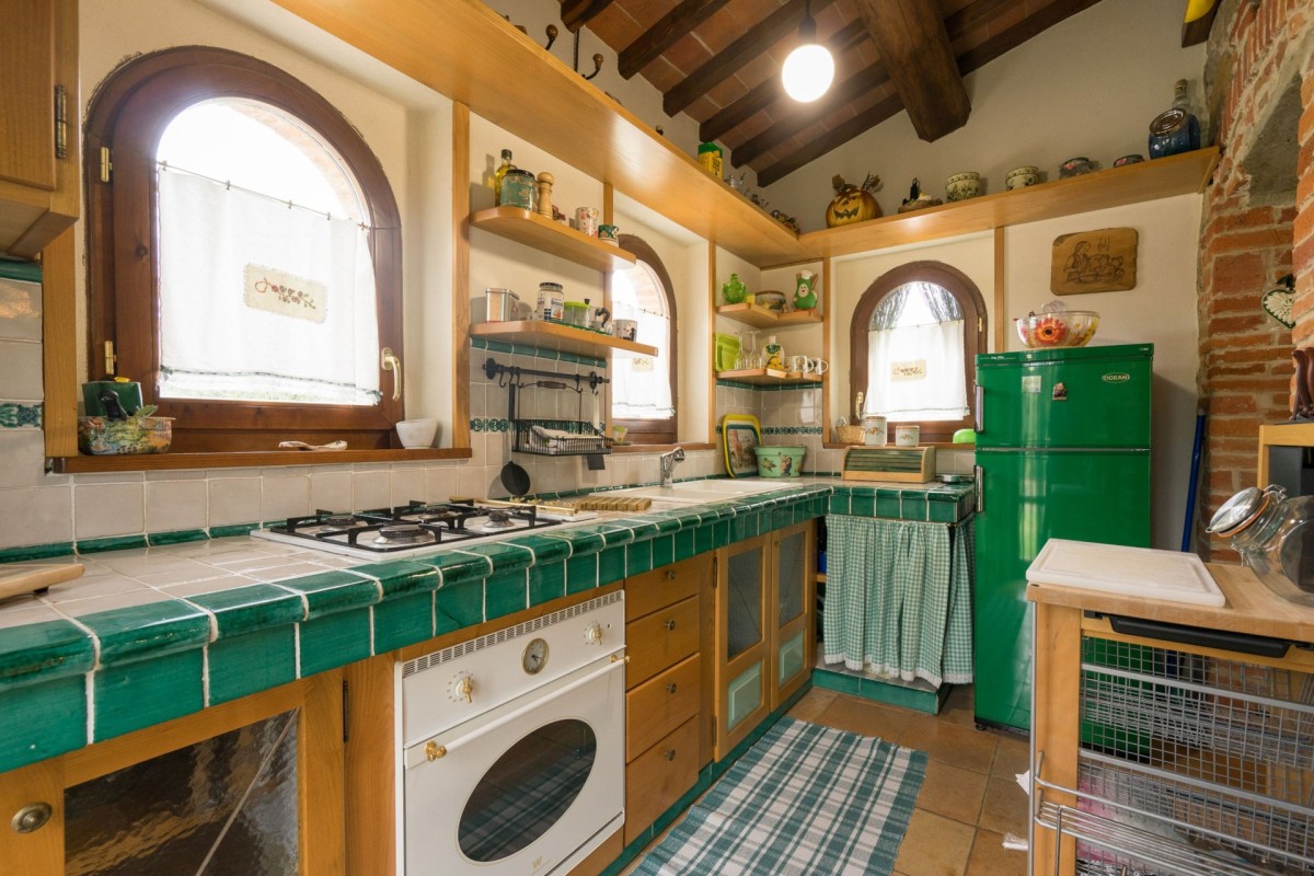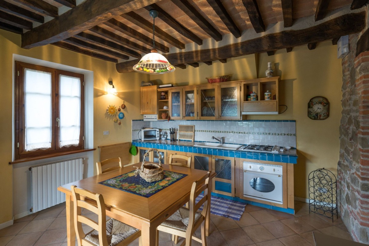 Each apartment features cozy living areas, fully equipped kitchens, and comfortable furnishings in a rustic-elegant Tuscan style. The suite, located beneath the pool area, provides additional privacy and charm.
