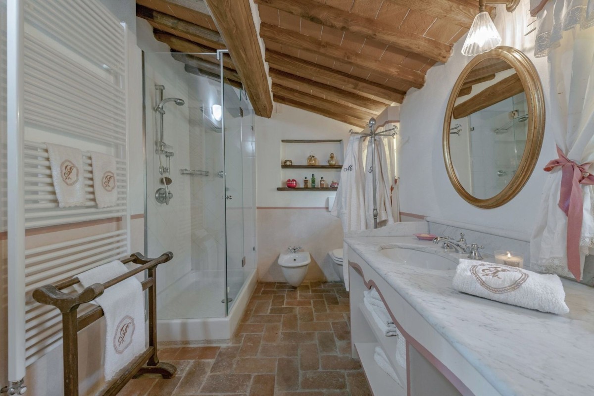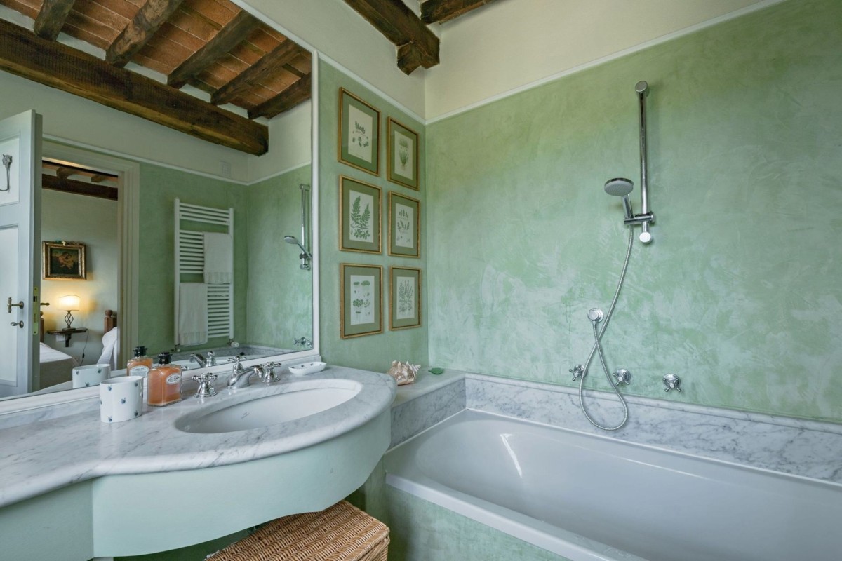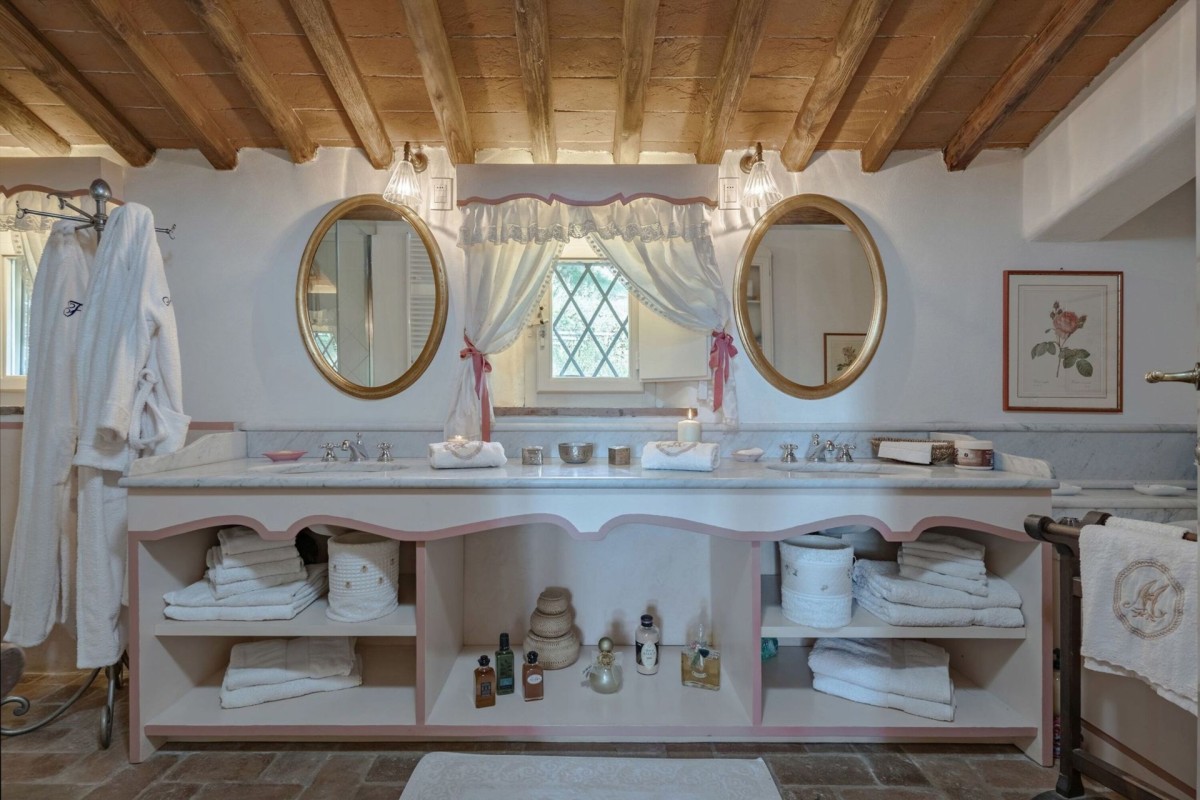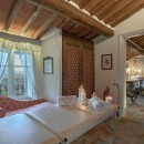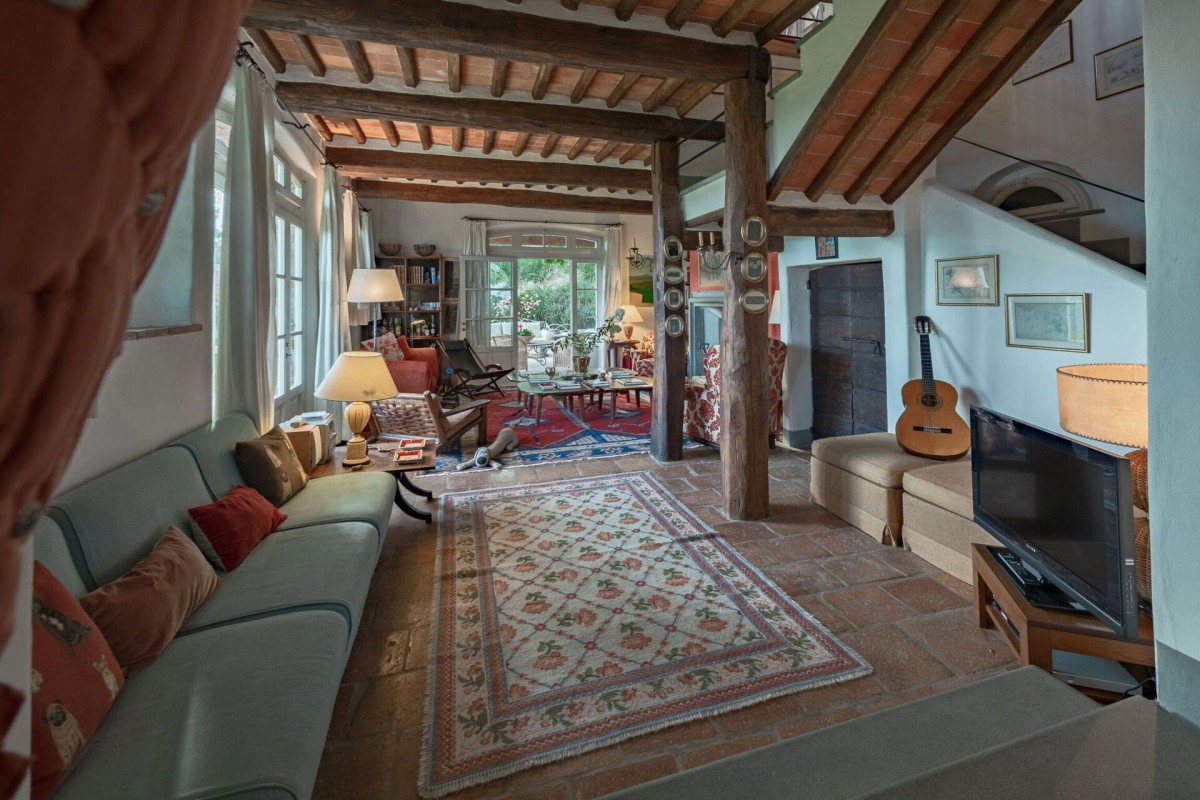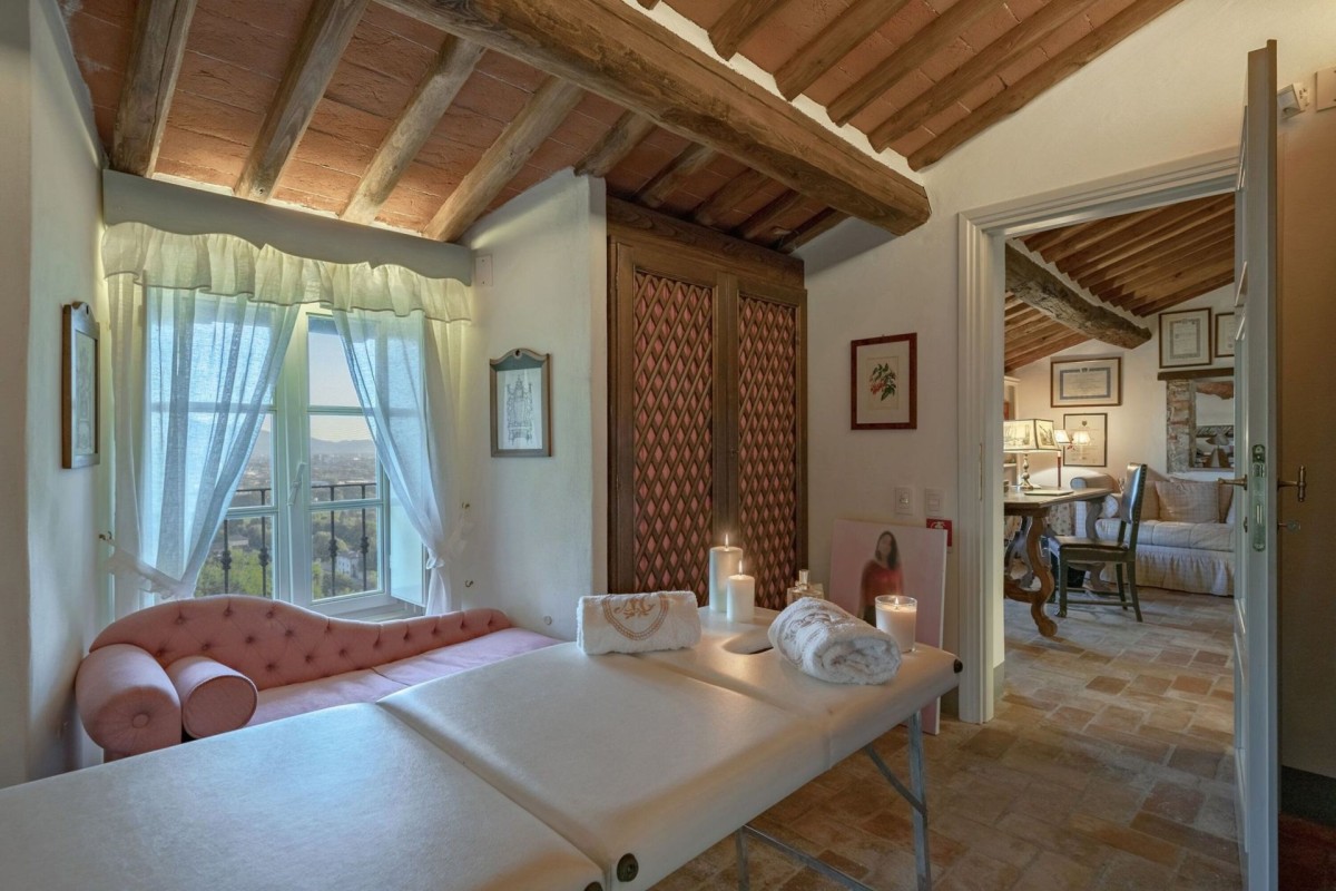 Dating back to the 16th century, Villa Marlia has been beautifully restored, preserving its authentic Tuscan character with stone walls, wooden beams, and terracotta floors, while adding refined modern comforts. The interiors are elegantly furnished, blending contemporary design with antique details for a warm and sophisticated ambiance.