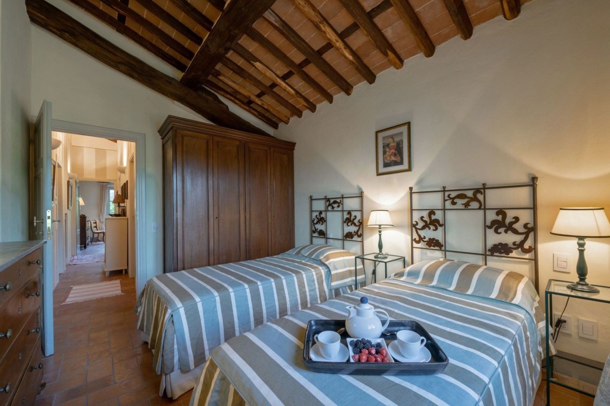Bedroom 7: First floor bedroom with two single beds, A/C, WiFi, and shared bathroom with shower, vanity, bidet, and WC. 2 guests maximum.