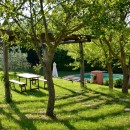 The outdoor spaces are enhanced by a beautiful pool (5 x 10 m, depth 140 cm), open from May to September, and equipped with sun loungers, parasol, external shower, and breakfast table.