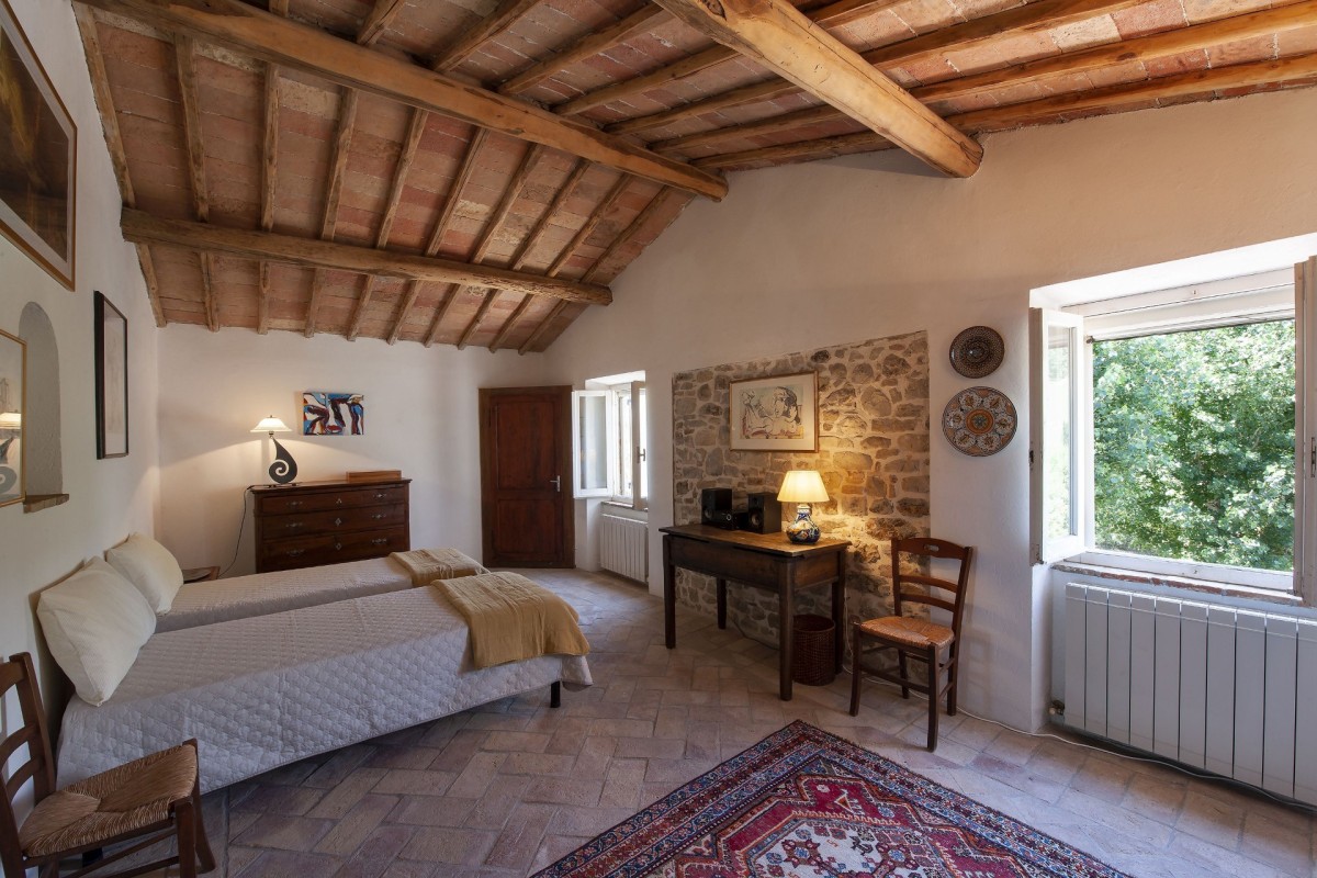 Bedroom 4: Top floor bedroom with two single beds, WiFi, and shared bathroom with bathtub / shower, vanity, bidet, and WC. 2 guests maximum.