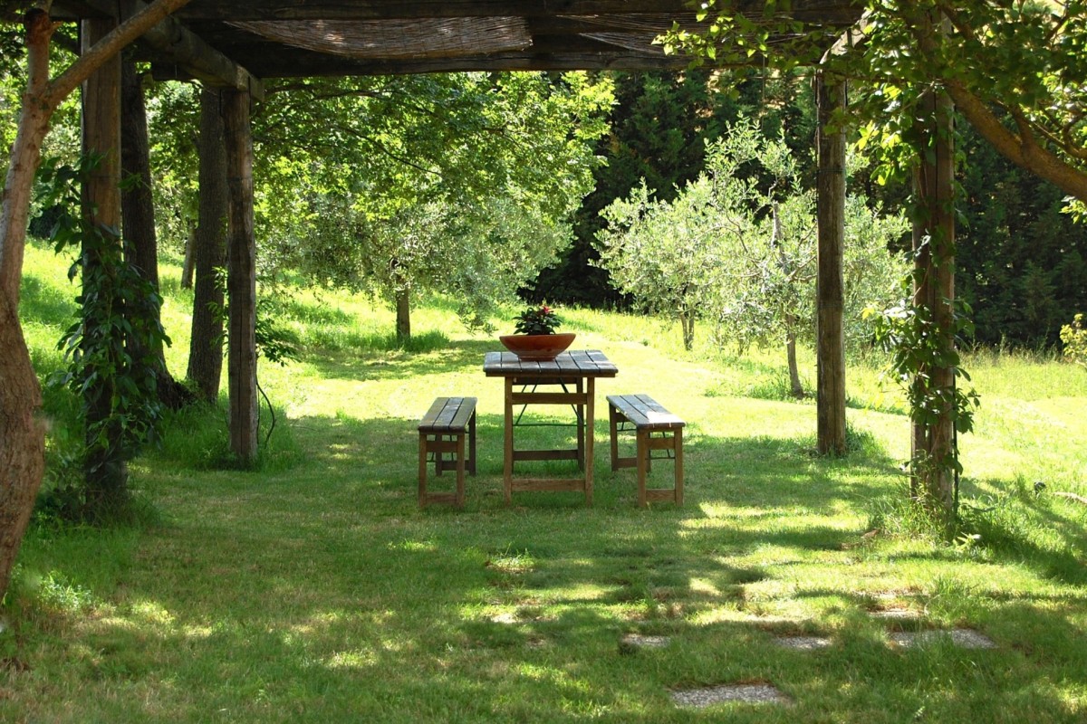 Villa degli Artisti is nestled in the peaceful Umbrian countryside, just 10 km from Todi. It boasts a private garden with a well-kept lawn, a wooden gazebo with a dining table, and uncovered parking for 4 cars. From the garden, guests can enjoy a wonderful view of the rolling hills.