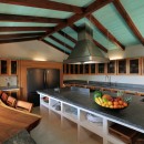 The second house boasts six bedrooms, including a luxurious king-size room with an en-suite bathtub. There are four additional double bedrooms, each with its own en-suite bathroom, furnished with two double beds and two single mattresses. A cozy storm room doubles as a TV lounge with a sofa bed and a full bathroom. The living and dining areas provide ample space for relaxation and gatherings, complemented by a guest bathroom. Outside, guests can enjoy a sparkling pool, a unique cave-beach bar, a snack area near the beach, and a distinctive cave bathroom.