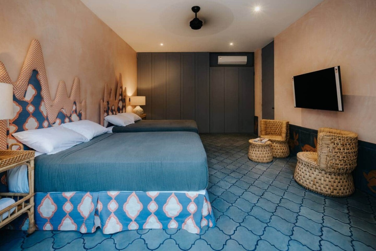 Bedroom 5: Bedroom with two double beds, A/C, WiFi, TV, private patio, and en-suite bathroom with shower, vanity and WC. 2 guests maximum.