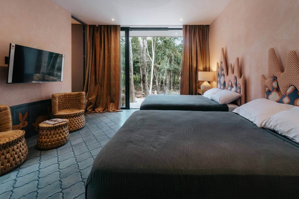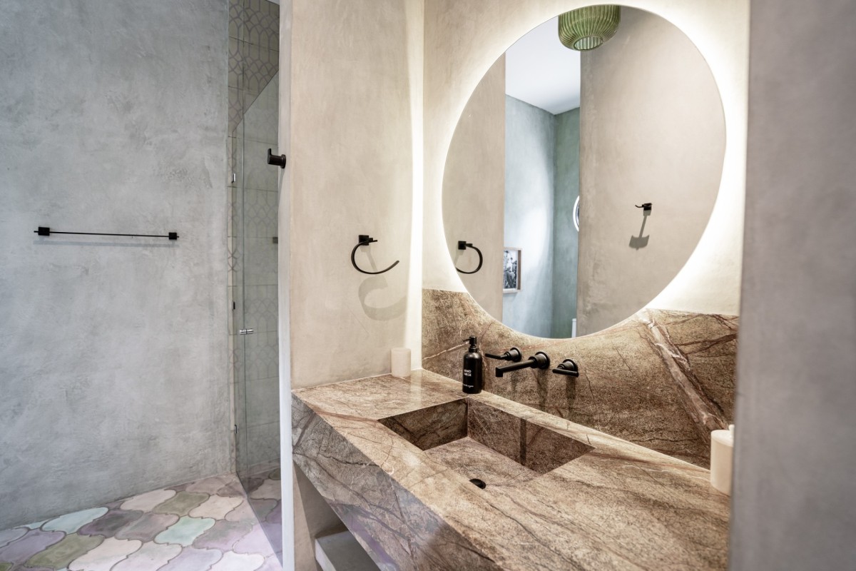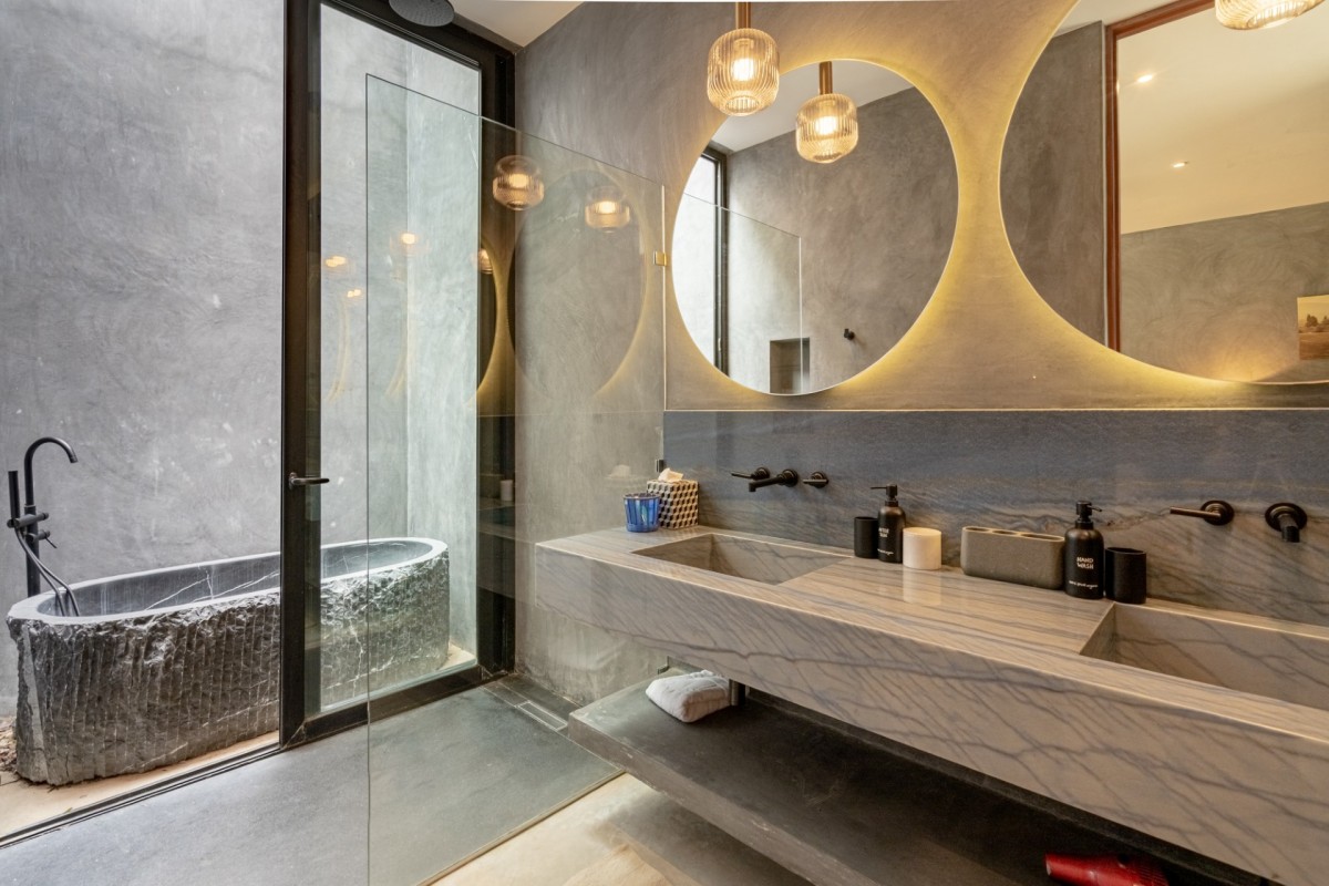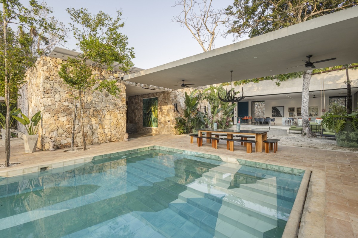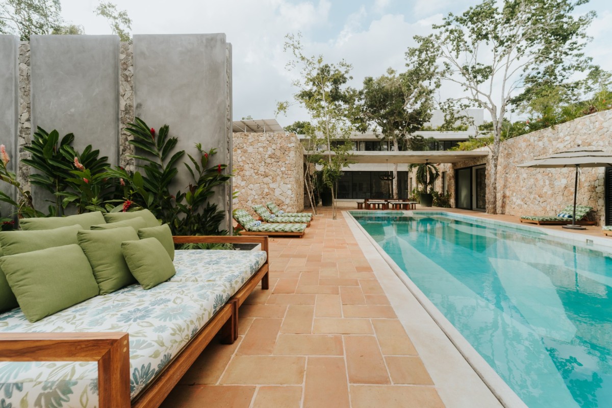 Step outside and experience Casa Xolo’s outdoor oasis. A magnificent 23-meter-long, 3-meter-deep swimming pool with an integrated bar invites you to sip margaritas as the sun sets. Multiple terraces throughout the property provide tranquil spots for yoga, shaded barbecues, or simply enjoying the jungle’s serene atmosphere. The non-heated jacuzzi on the terrace doubles as a refreshing plunge pool or a rejuvenating ice bath experience.