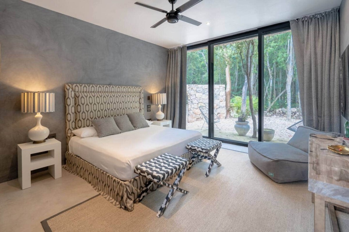 Every detail at Casa Xolo is designed for both comfort and sophistication, featuring smart TVs, air conditioning in all rooms (except the living room), ceiling fans, and security safes in every bedroom.