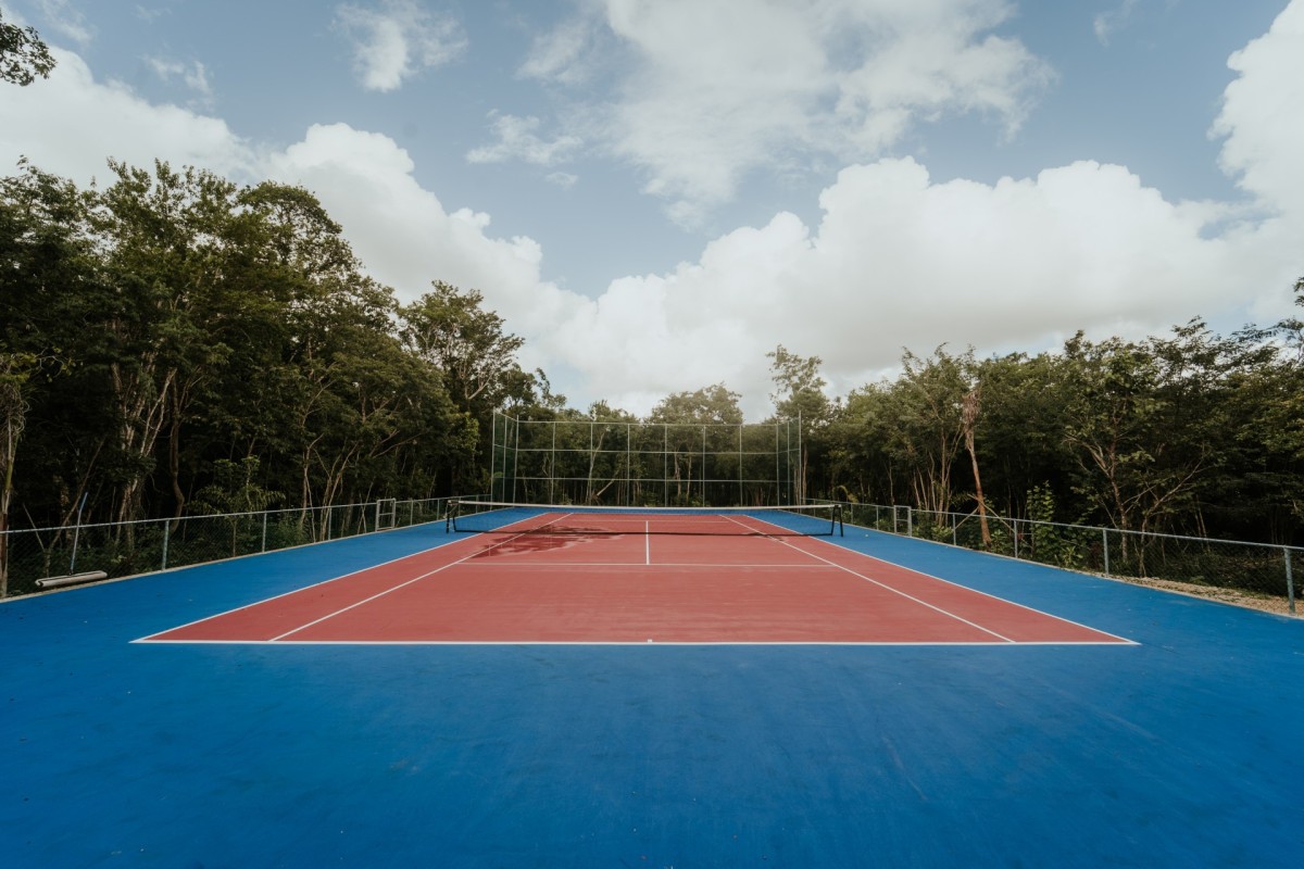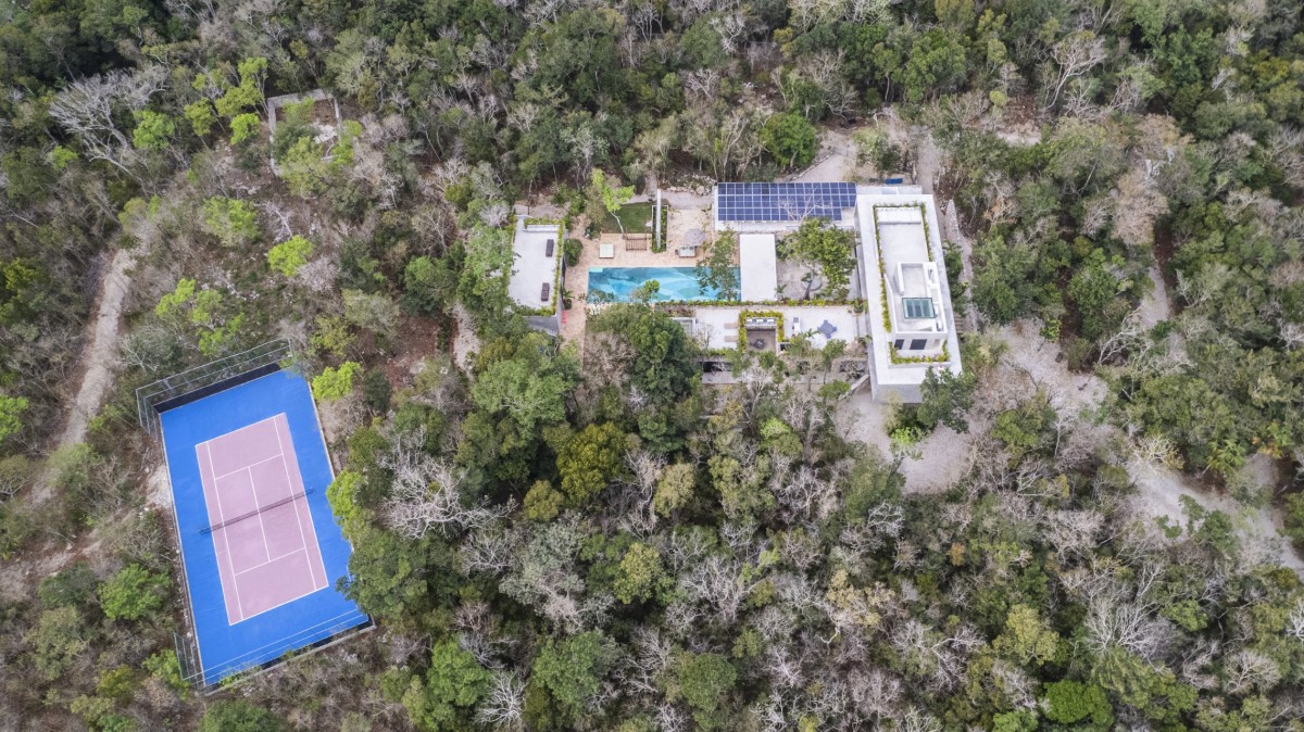 From the rooftop terraces, dine beneath the stars or watch the sun dip below the lush canopy in a stunning display of color. For those seeking recreation, a private tennis court is just steps away from the main residence, ideal for friendly matches surrounded by nature.